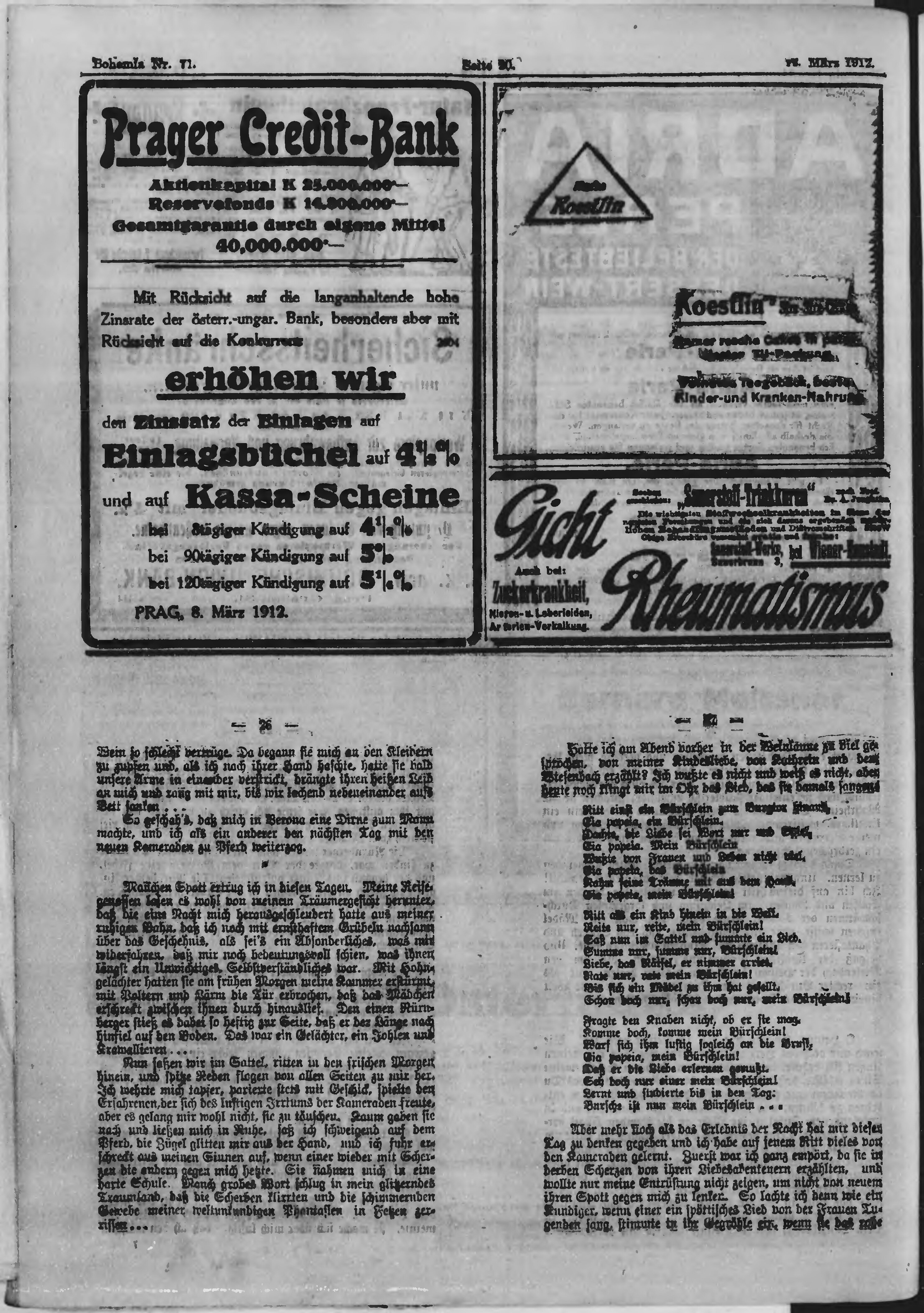 * Datum vydání výtisku: 12.3.1912 Číslo výtisku: 71 Poznámky k výtisku: ranní vydání;