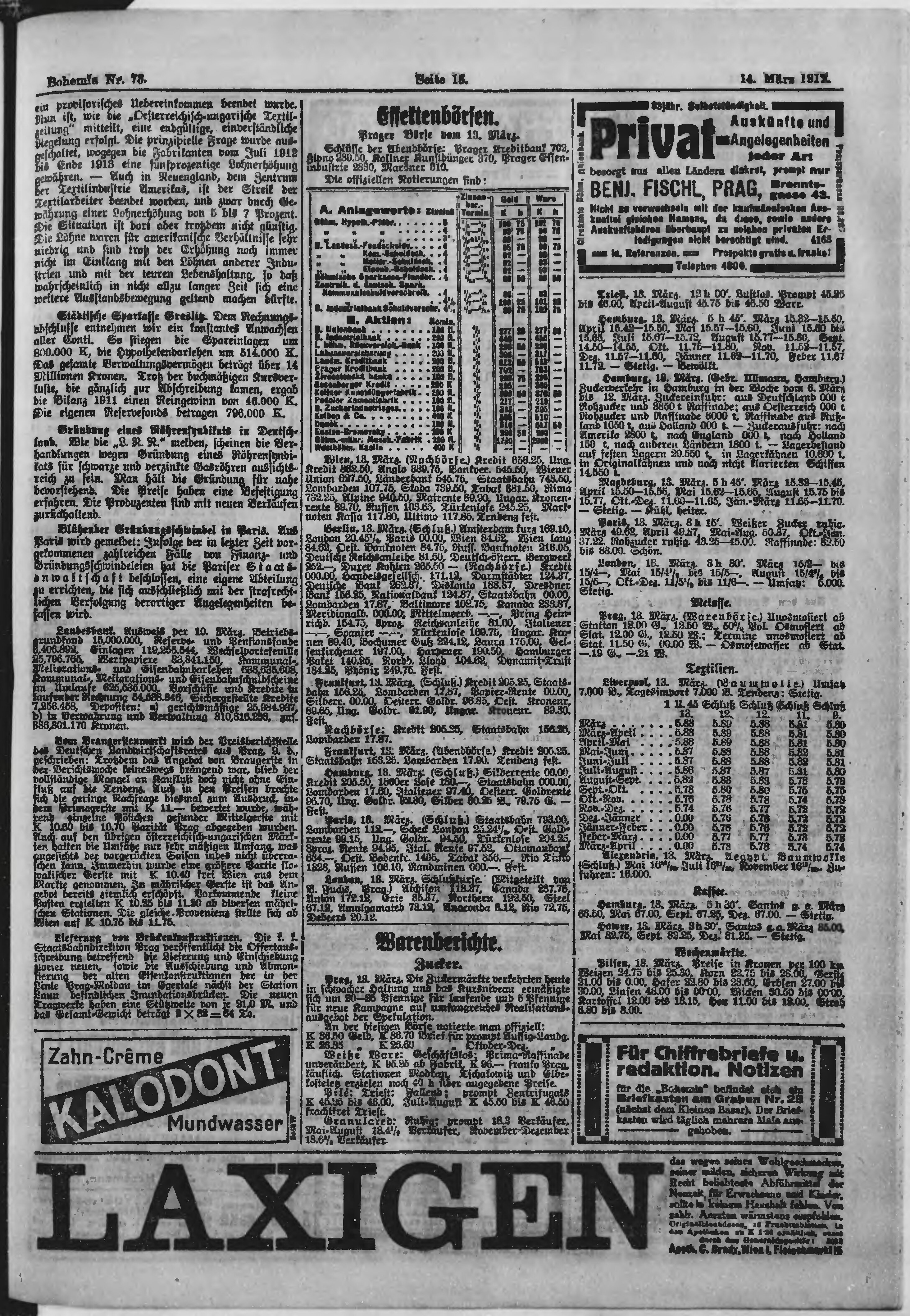 * Datum vydání výtisku: 14.3.1912 Číslo výtisku: 73 Poznámky k výtisku: ranní vydání;