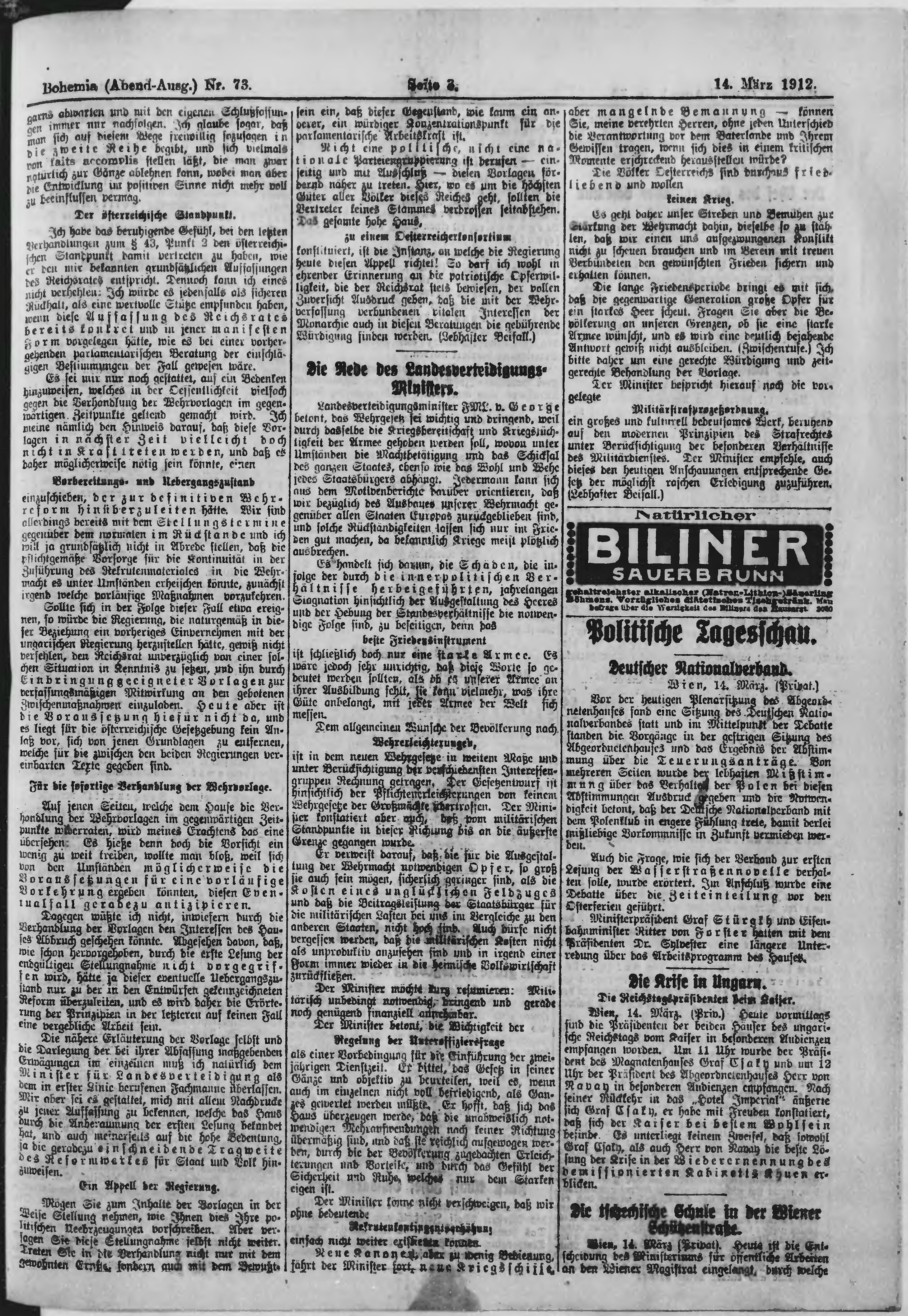 * Datum vydání výtisku: 14.3.1912 Číslo výtisku: 73 Poznámky k výtisku: večerní vydání