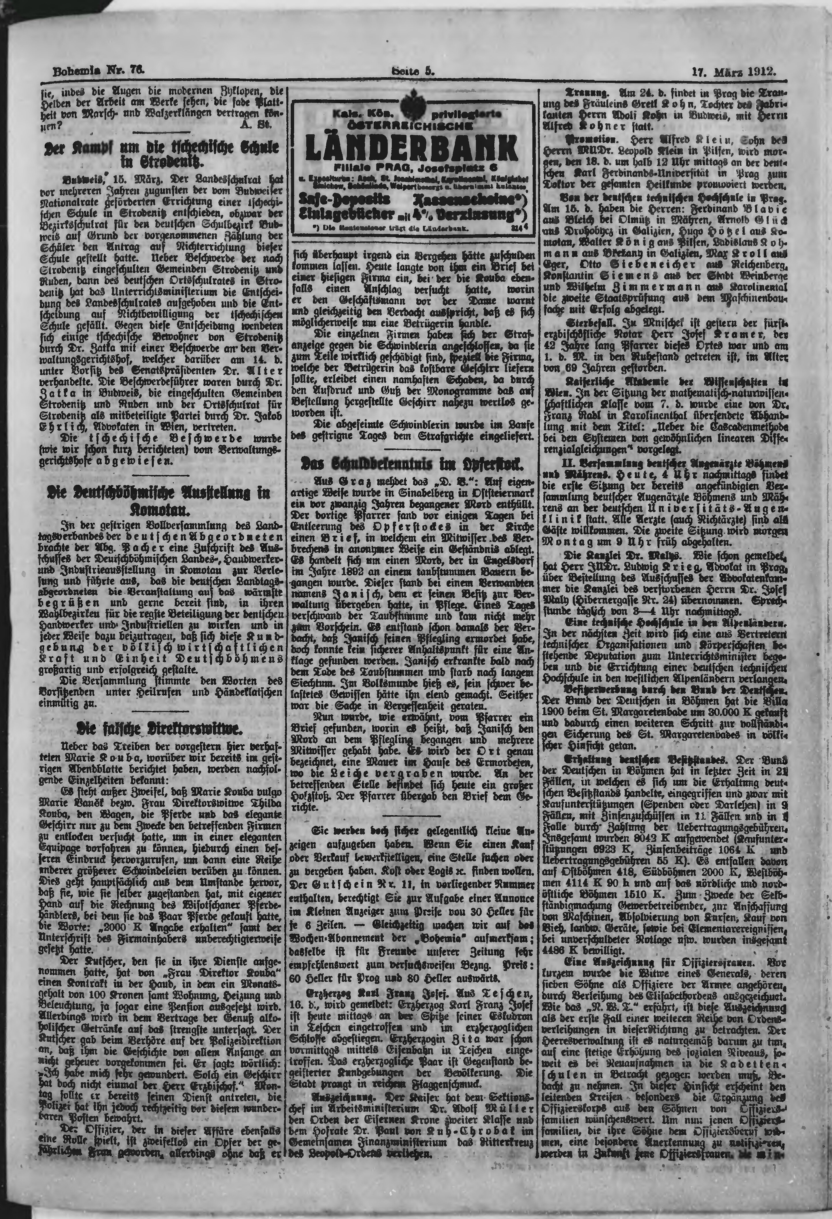 * Datum vydání výtisku: 17.3.1912 Číslo výtisku: 76 Poznámky k výtisku: ranní vydání;