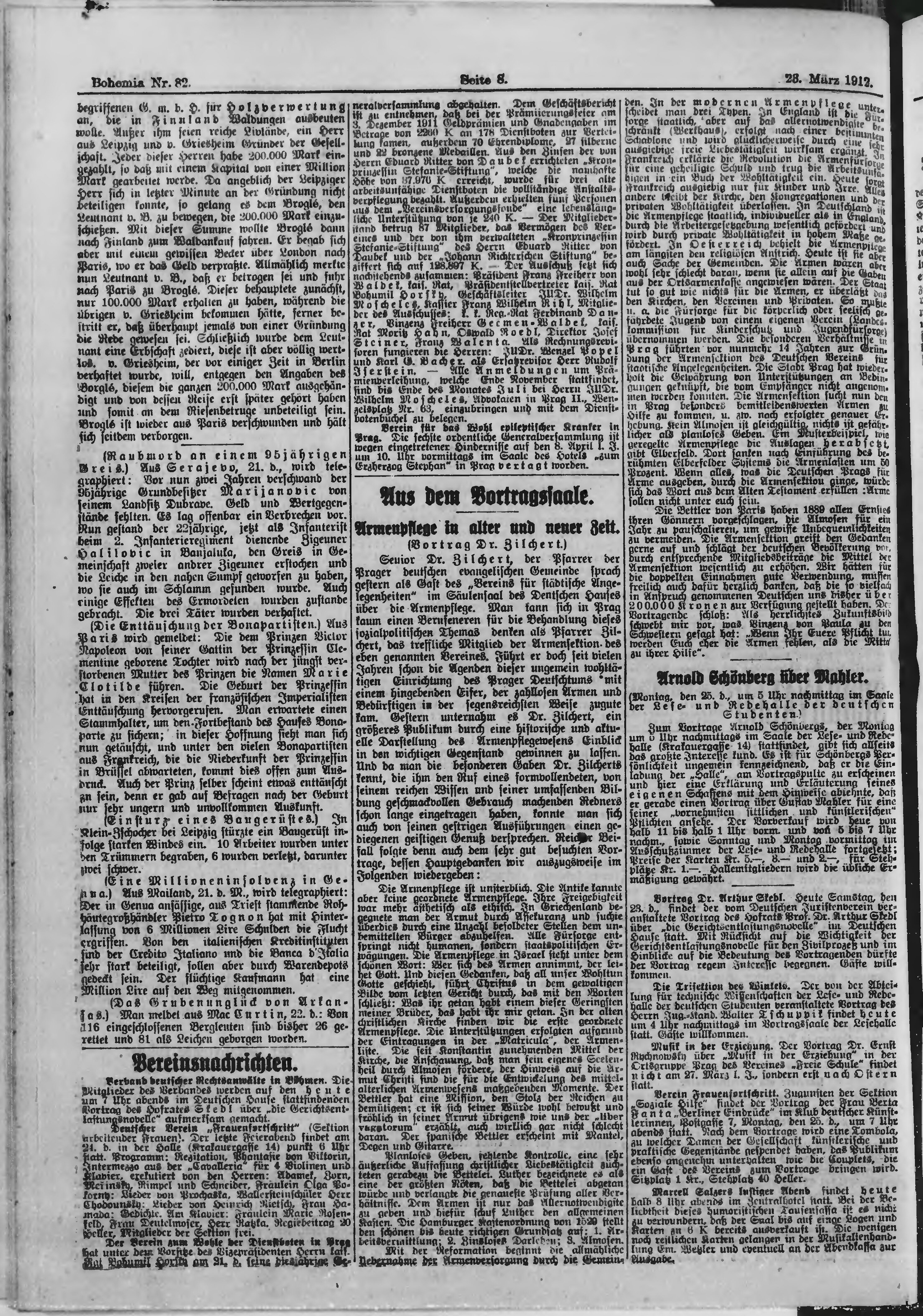 * Datum vydání výtisku: 23.3.1912 Číslo výtisku: 82 Poznámky k výtisku: ranní vydání;