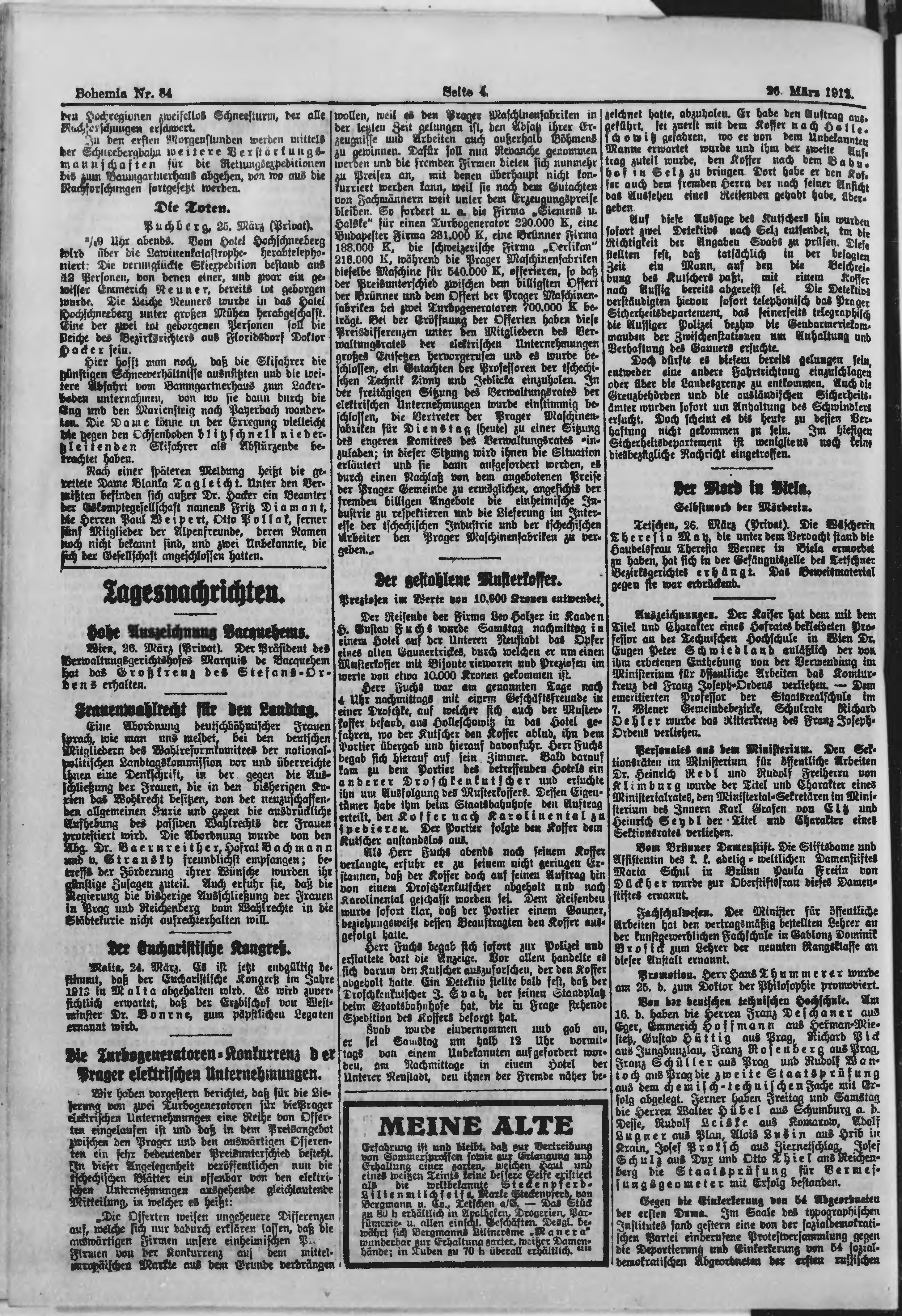 * Datum vydání výtisku: 26.3.1912 Číslo výtisku: 84 Poznámky k výtisku: polední vydání;