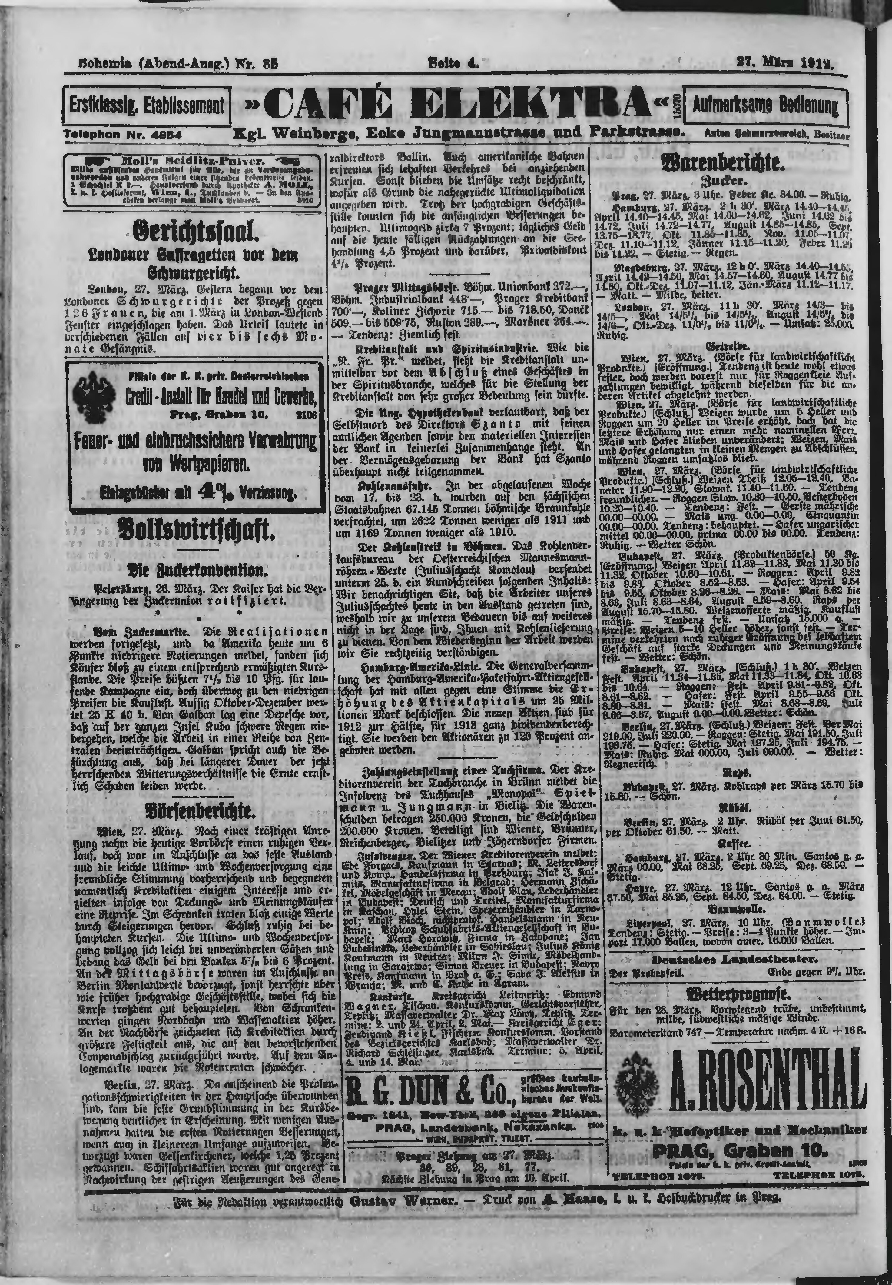 * Datum vydání výtisku: 27.3.1912 Číslo výtisku: 85 Poznámky k výtisku: večerní vydání