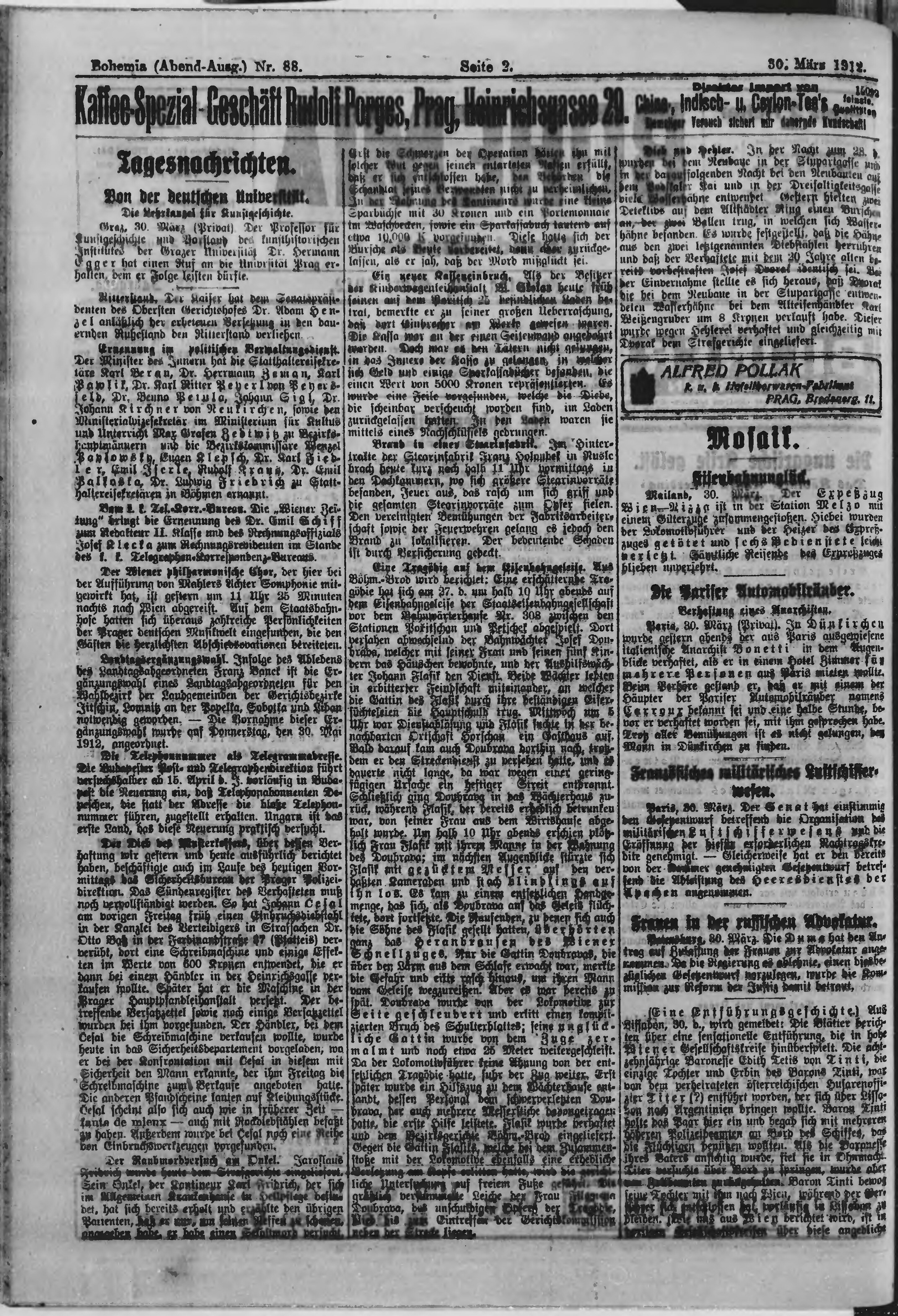 * Datum vydání výtisku: 30.3.1912 Číslo výtisku: 88 Poznámky k výtisku: večerní vydání