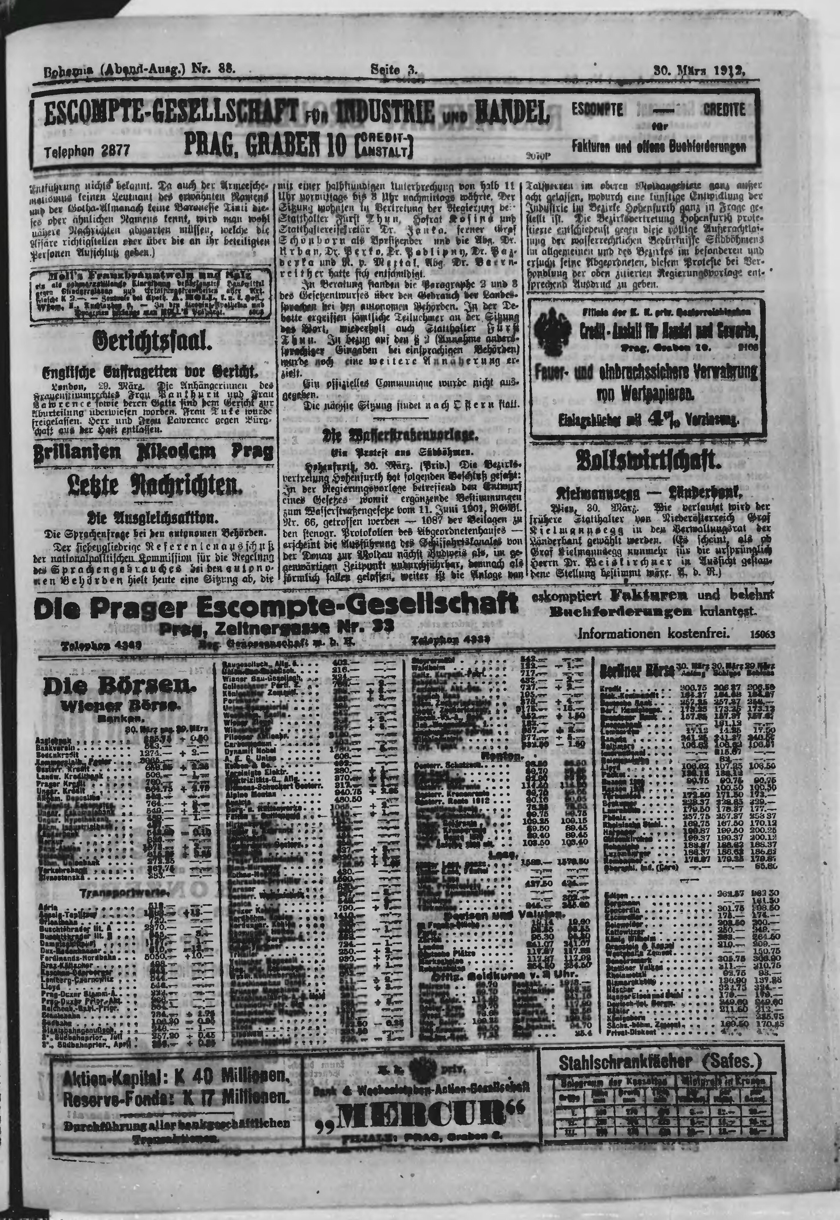 * Datum vydání výtisku: 30.3.1912 Číslo výtisku: 88 Poznámky k výtisku: večerní vydání