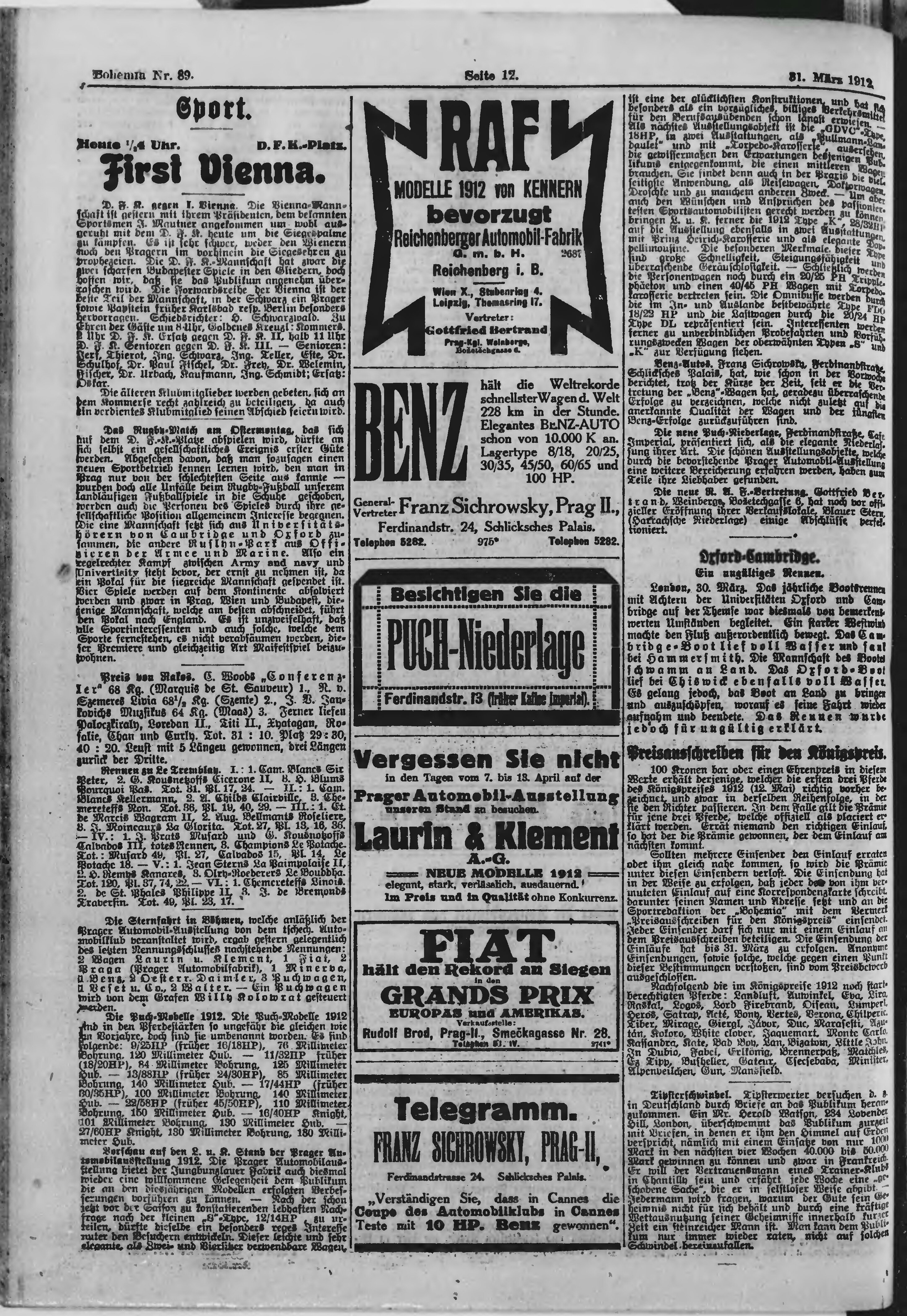 * Datum vydání výtisku: 31.3.1912 Číslo výtisku: 89 Poznámky k výtisku: ranní vydání;