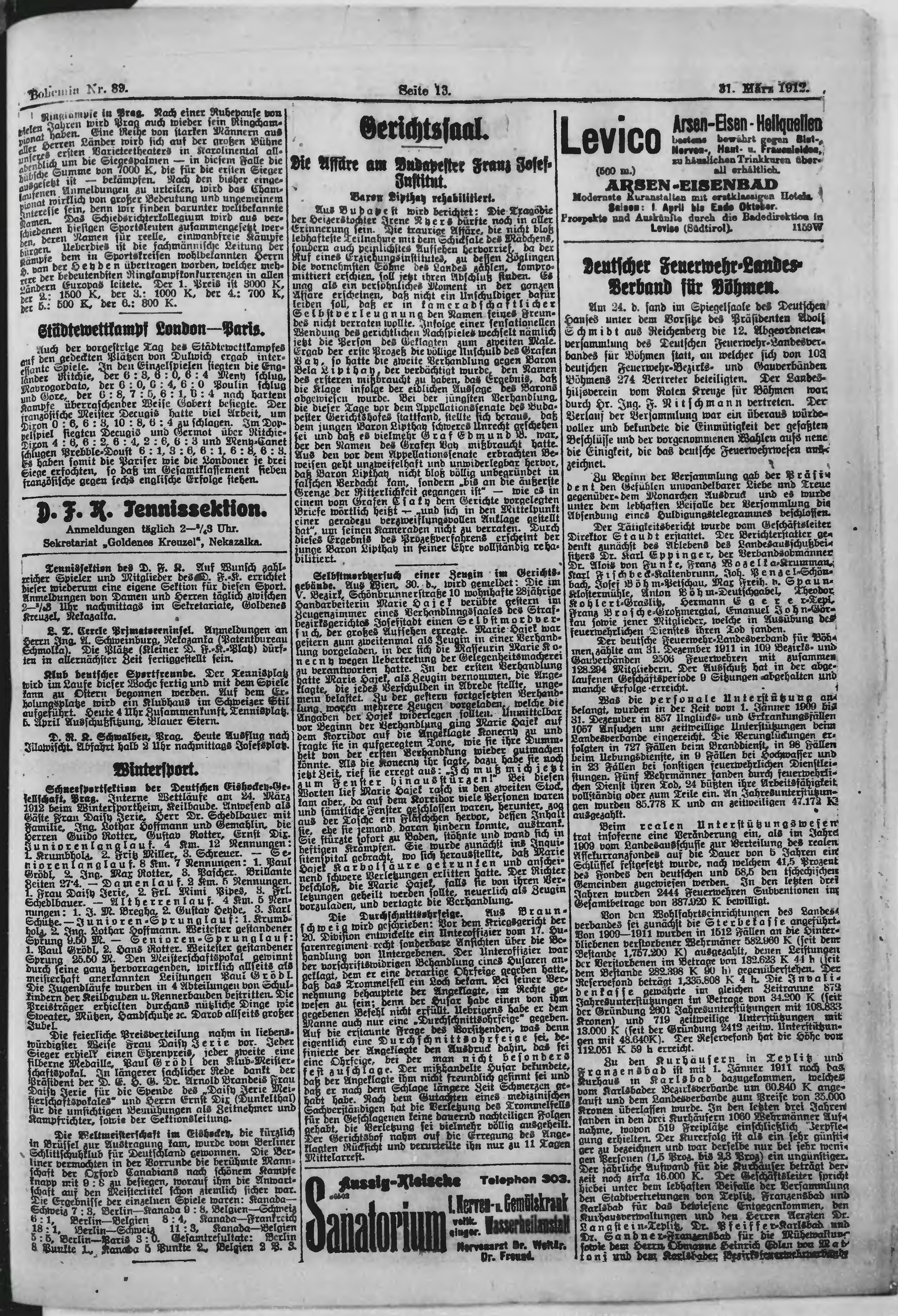 * Datum vydání výtisku: 31.3.1912 Číslo výtisku: 89 Poznámky k výtisku: ranní vydání;