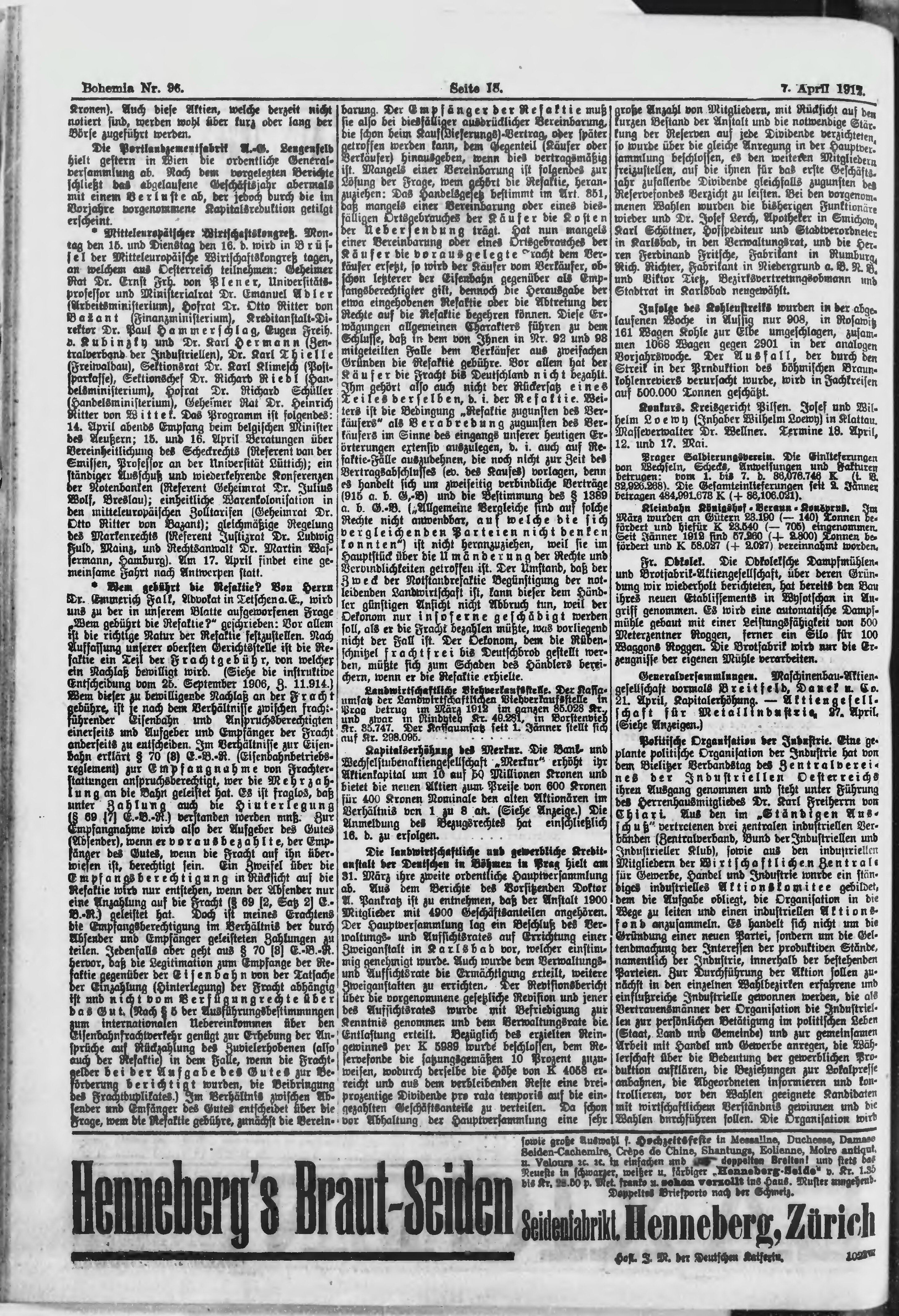 * Datum vydání výtisku: 7.4.1912 Číslo výtisku: 96 Poznámky k výtisku: ranní vydání;