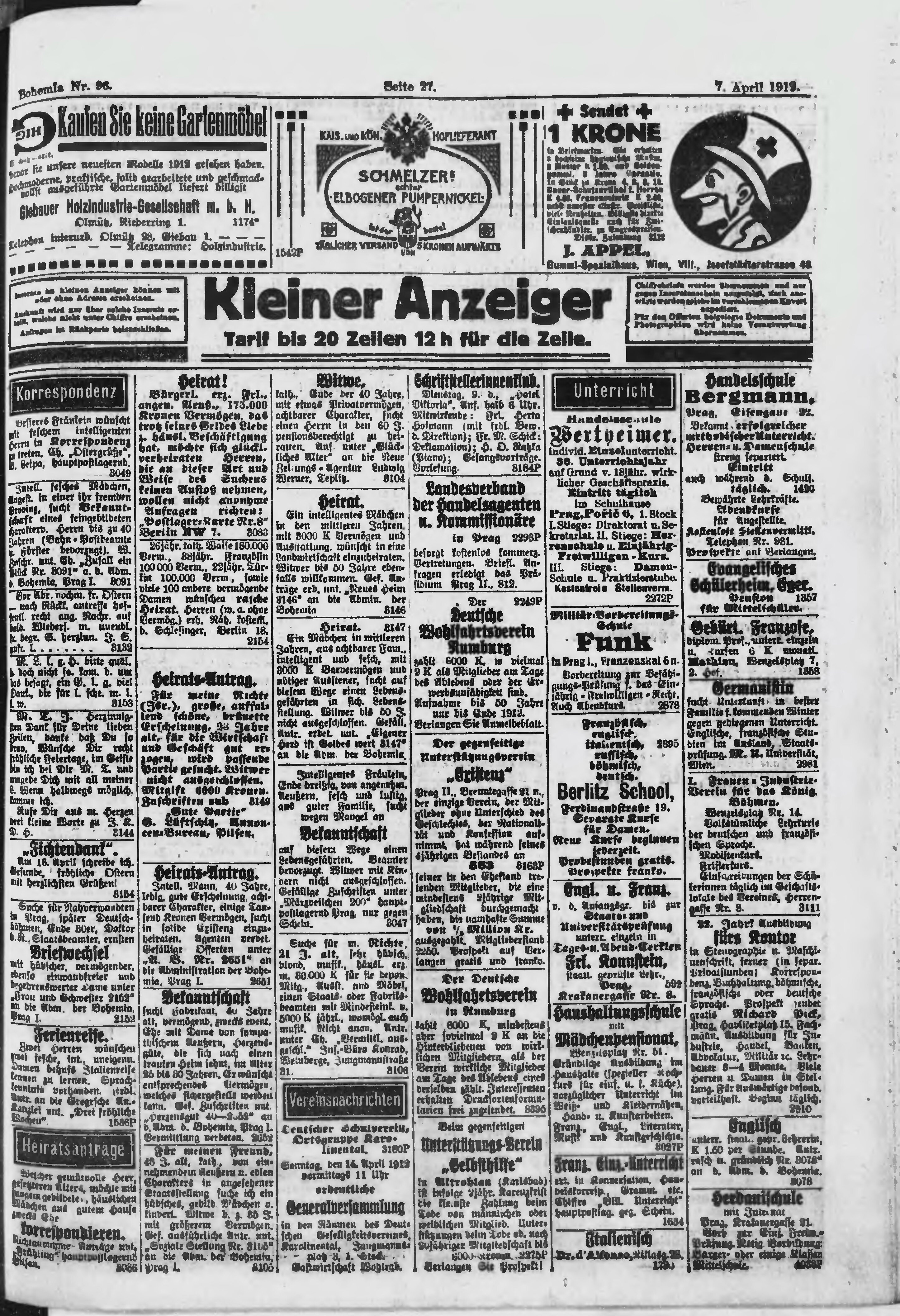 * Datum vydání výtisku: 7.4.1912 Číslo výtisku: 96 Poznámky k výtisku: ranní vydání;
