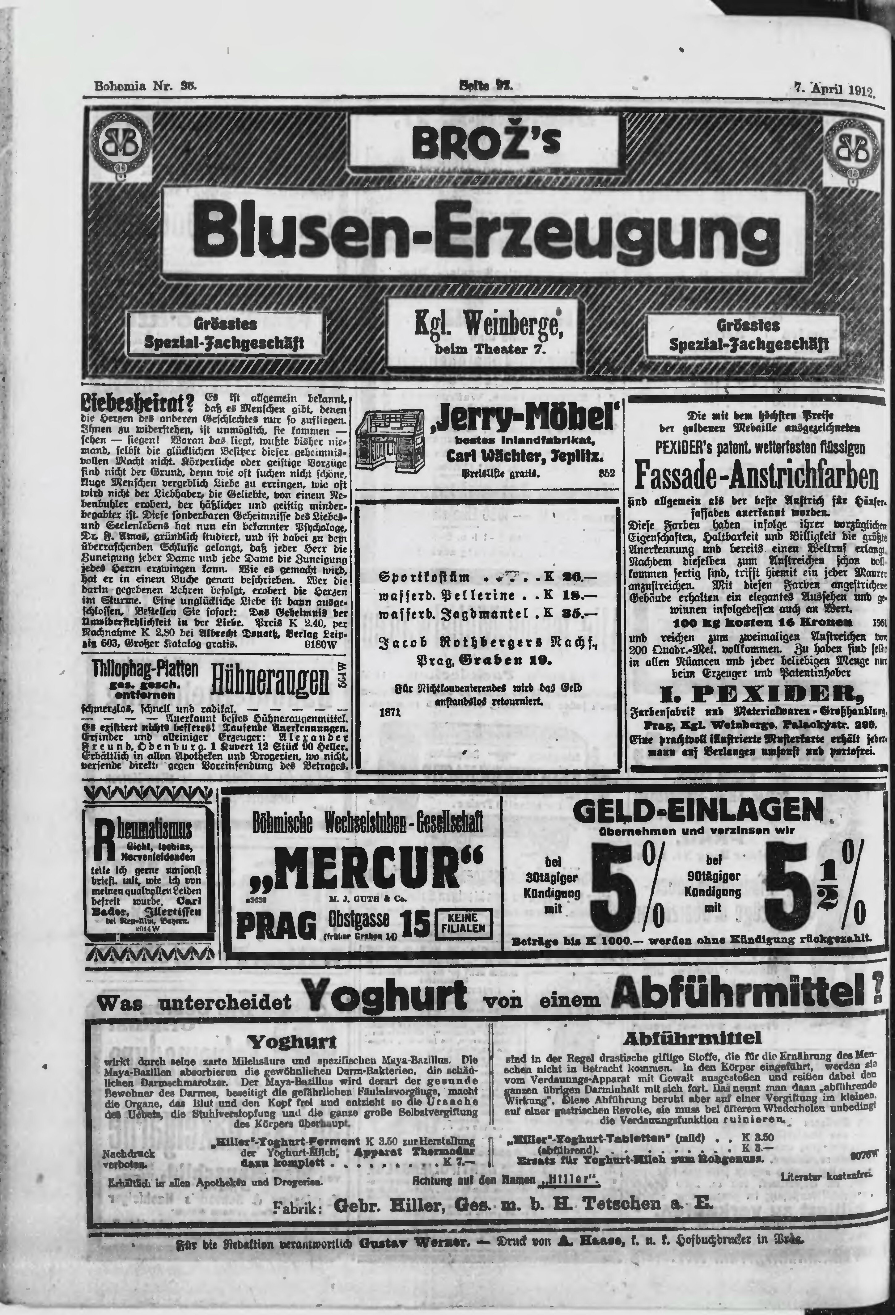 * Datum vydání výtisku: 7.4.1912 Číslo výtisku: 96 Poznámky k výtisku: ranní vydání;
