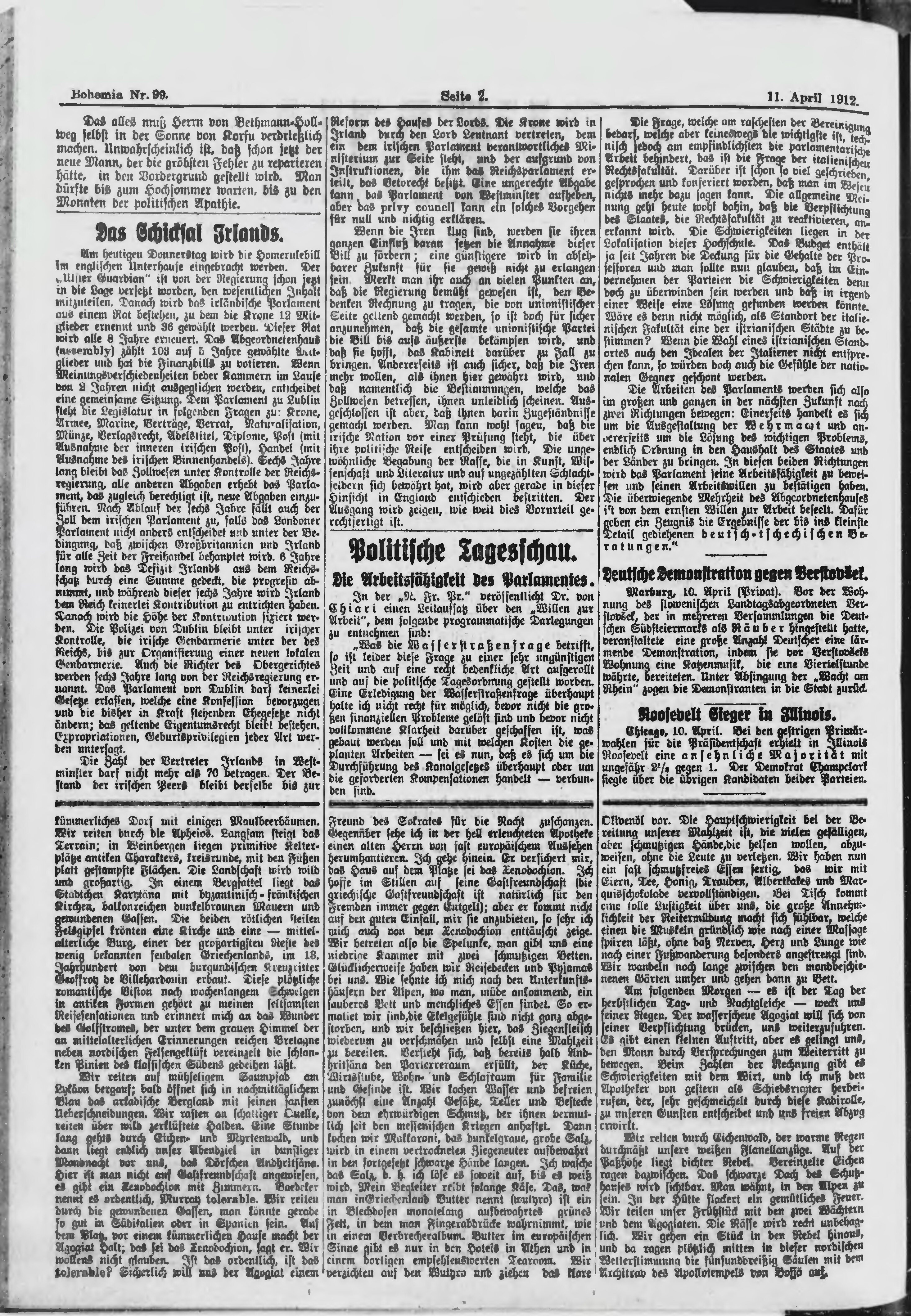 * Datum vydání výtisku: 11.4.1912 Číslo výtisku: 99 Poznámky k výtisku: ranní vydání;