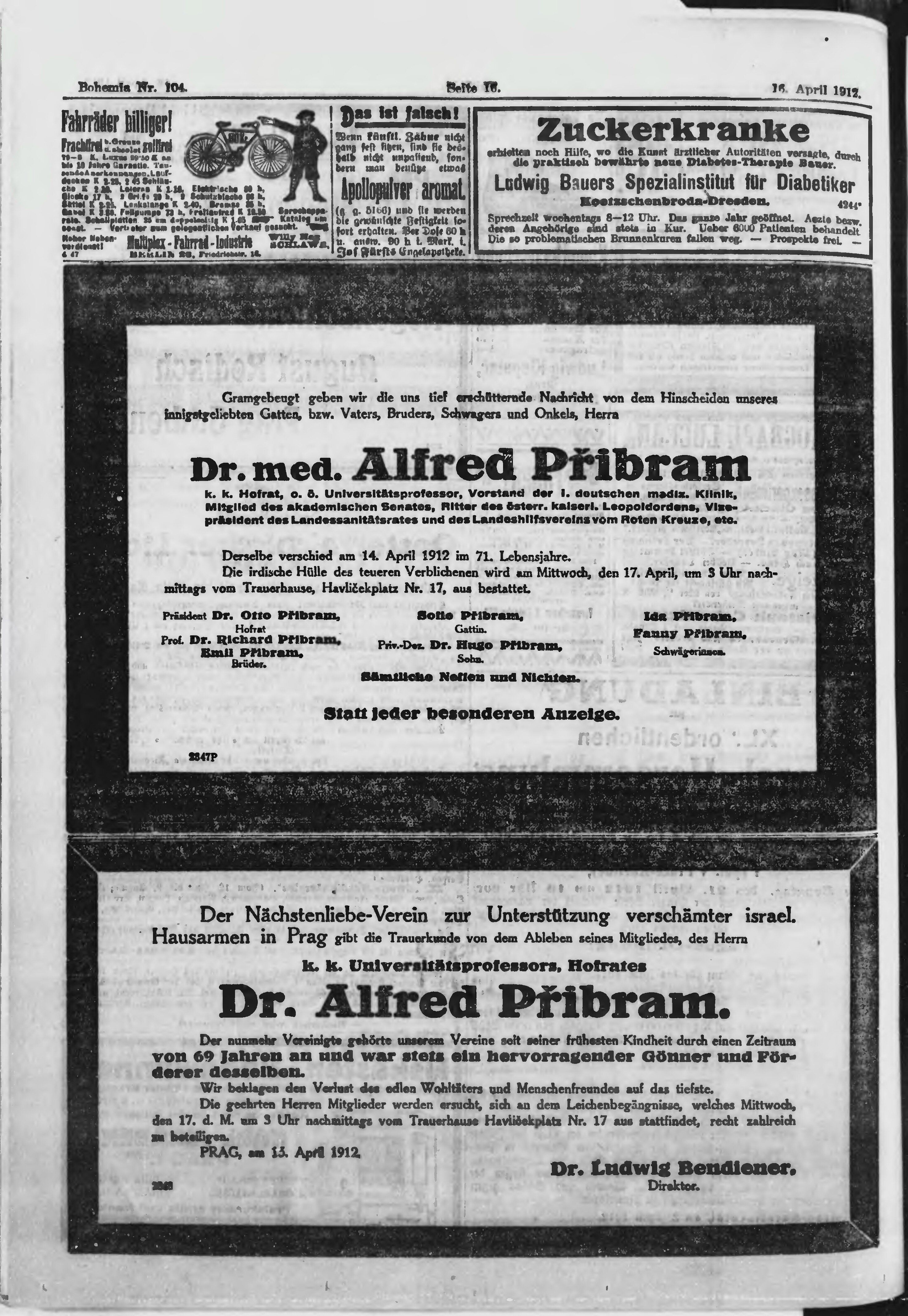 * Datum vydání výtisku: 16.4.1912 Číslo výtisku: 104 Poznámky k výtisku: ranní vydání;