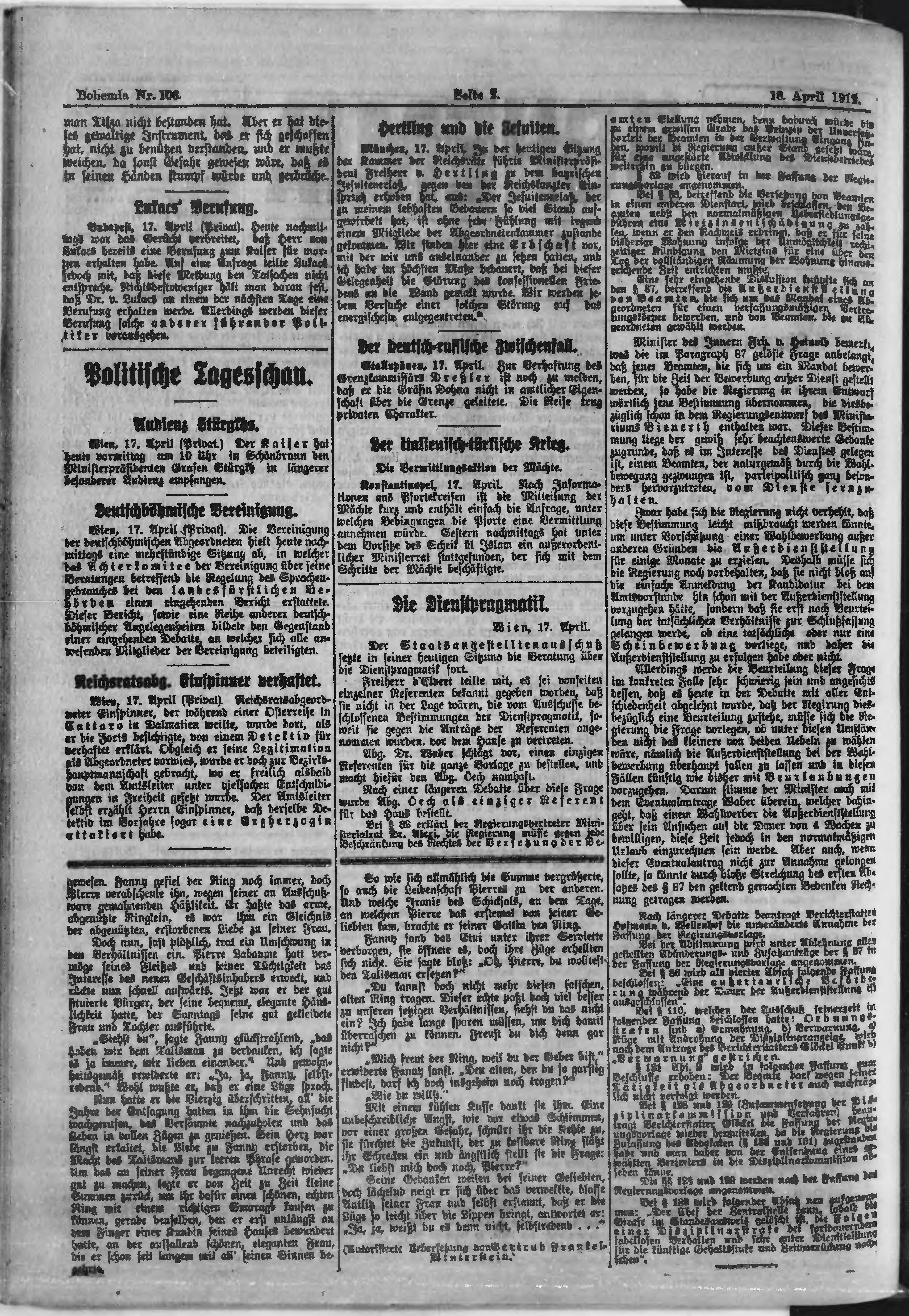 * Datum vydání výtisku: 18.4.1912 Číslo výtisku: 106 Poznámky k výtisku: ranní vydání;