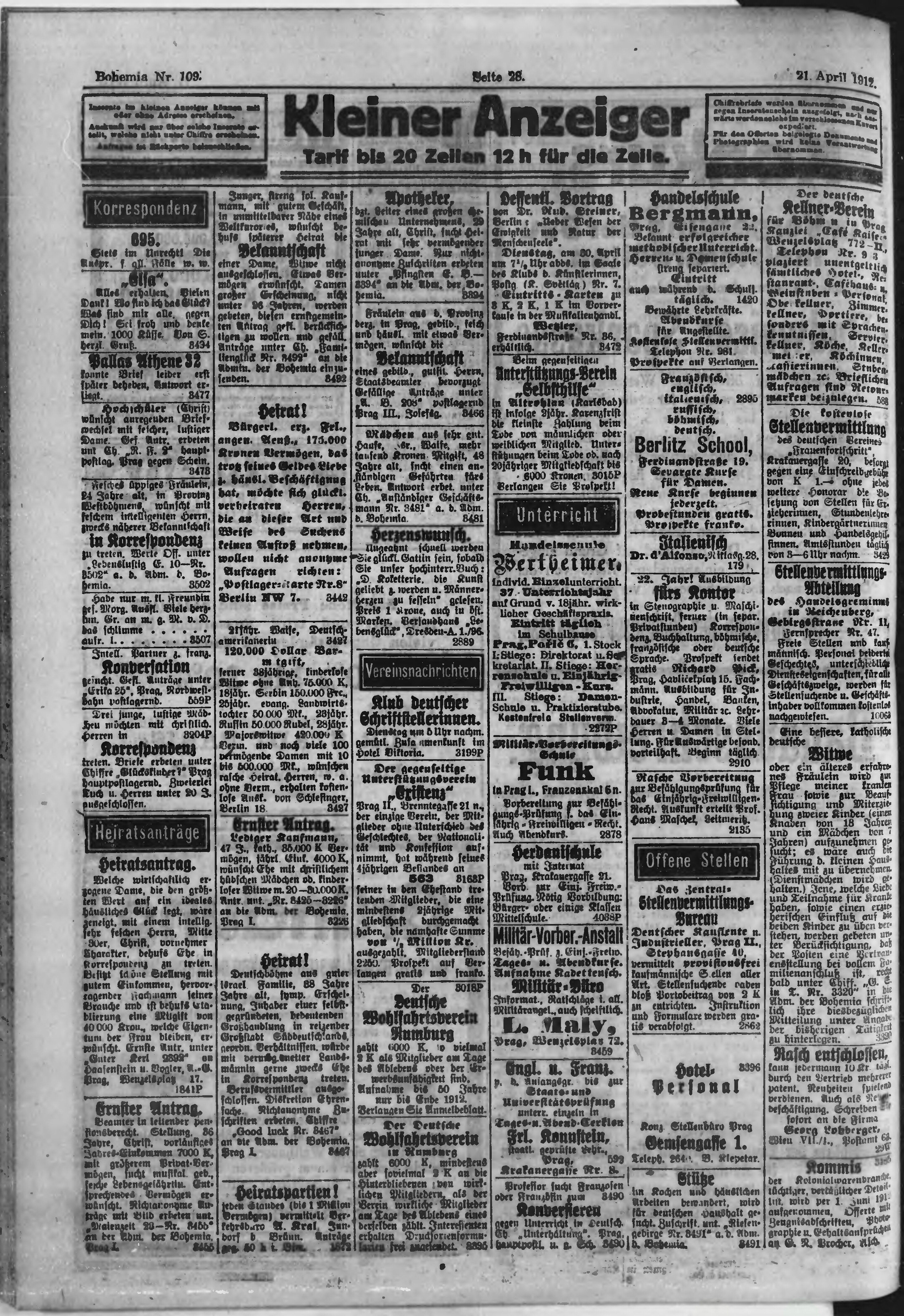 * Datum vydání výtisku: 21.4.1912 Číslo výtisku: 109 Poznámky k výtisku: ranní vydání;