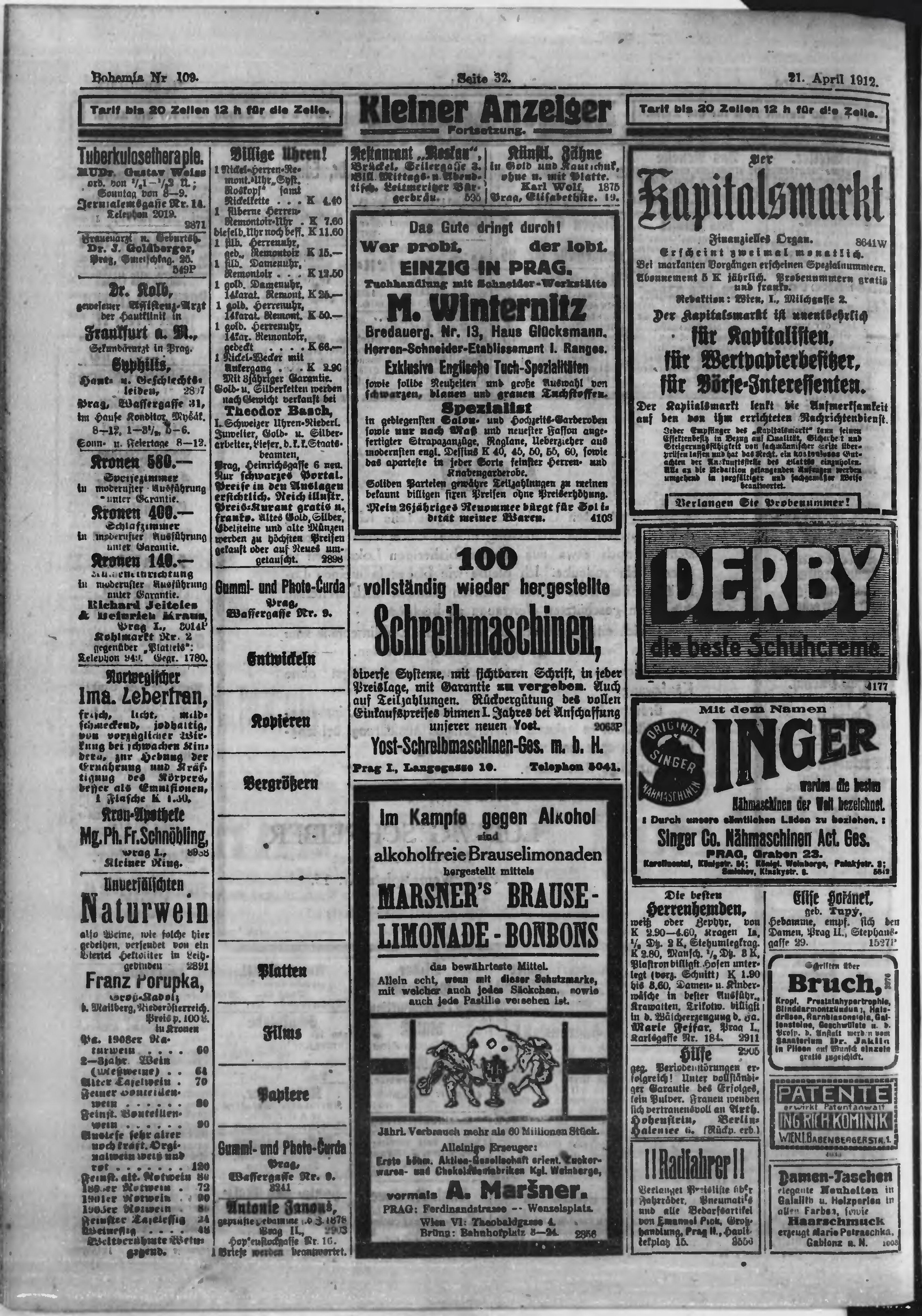 * Datum vydání výtisku: 21.4.1912 Číslo výtisku: 109 Poznámky k výtisku: ranní vydání;