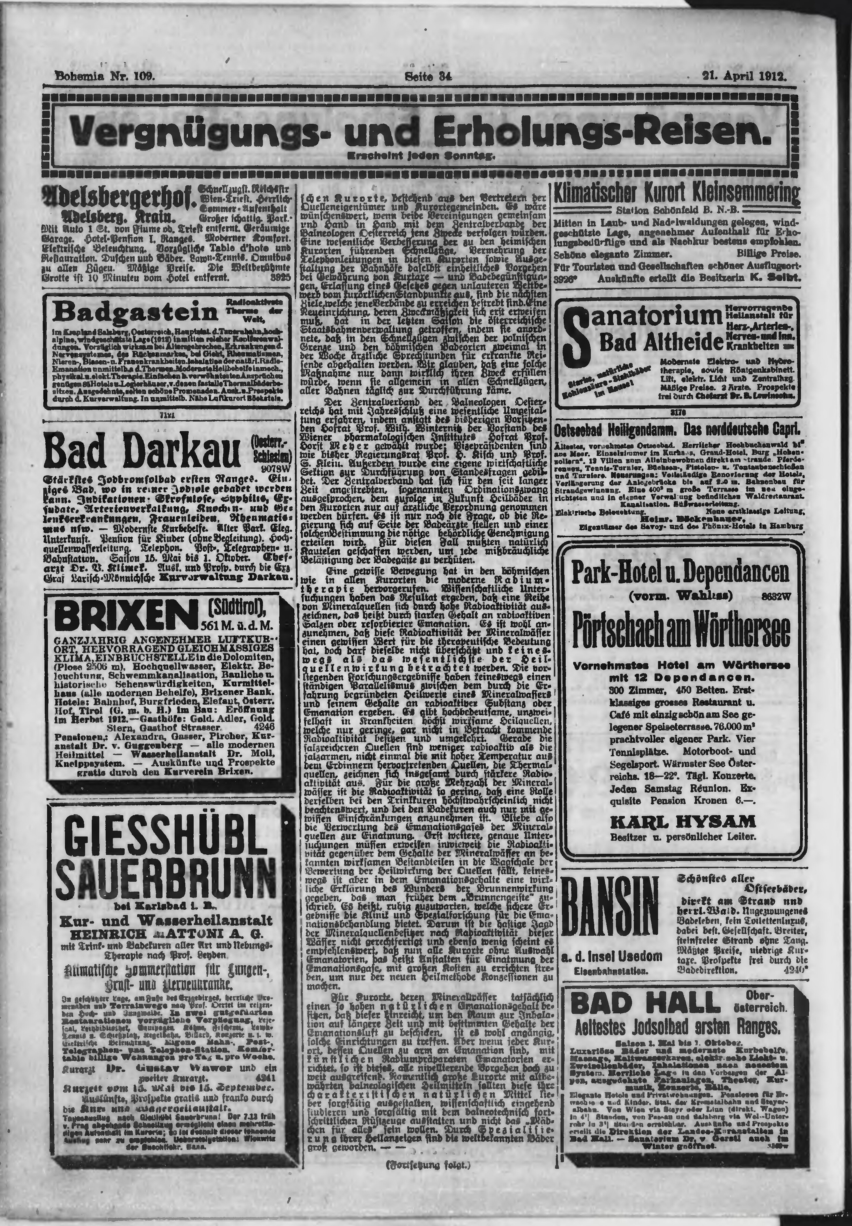 * Datum vydání výtisku: 21.4.1912 Číslo výtisku: 109 Poznámky k výtisku: ranní vydání;