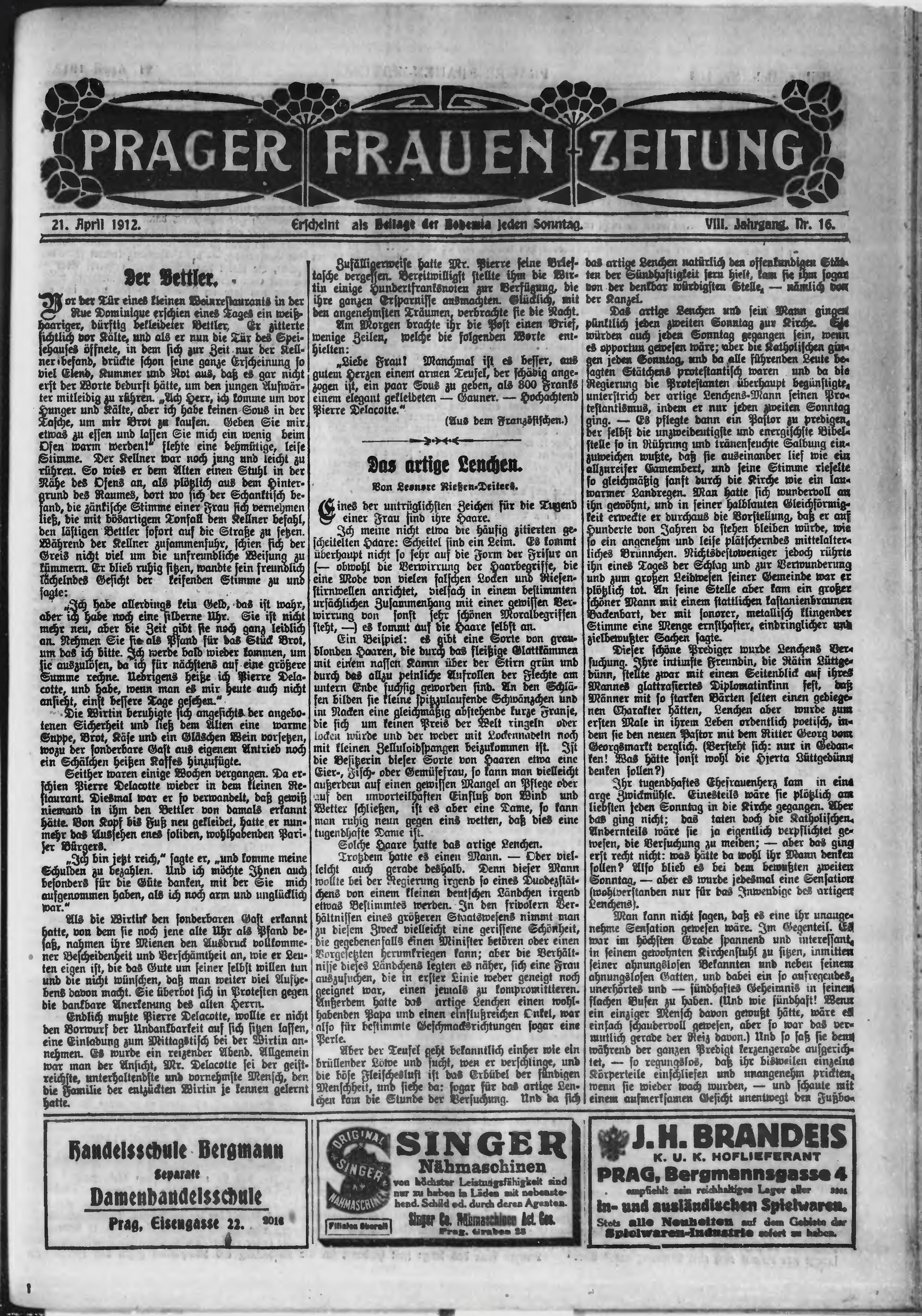 * Datum vydání výtisku: 21.4.1912 Číslo výtisku: 109 Poznámky k výtisku: ranní vydání;