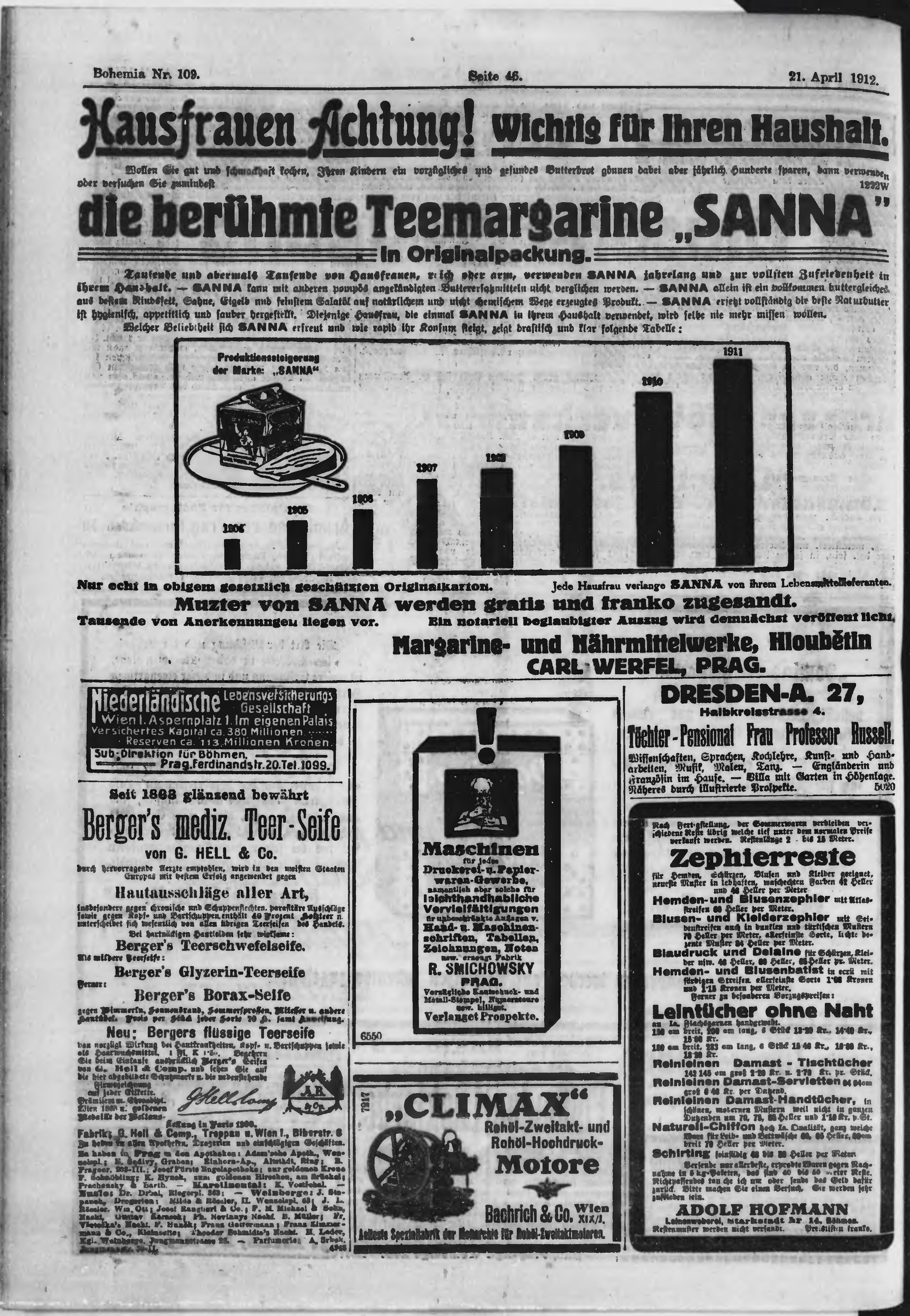 * Datum vydání výtisku: 21.4.1912 Číslo výtisku: 109 Poznámky k výtisku: ranní vydání;