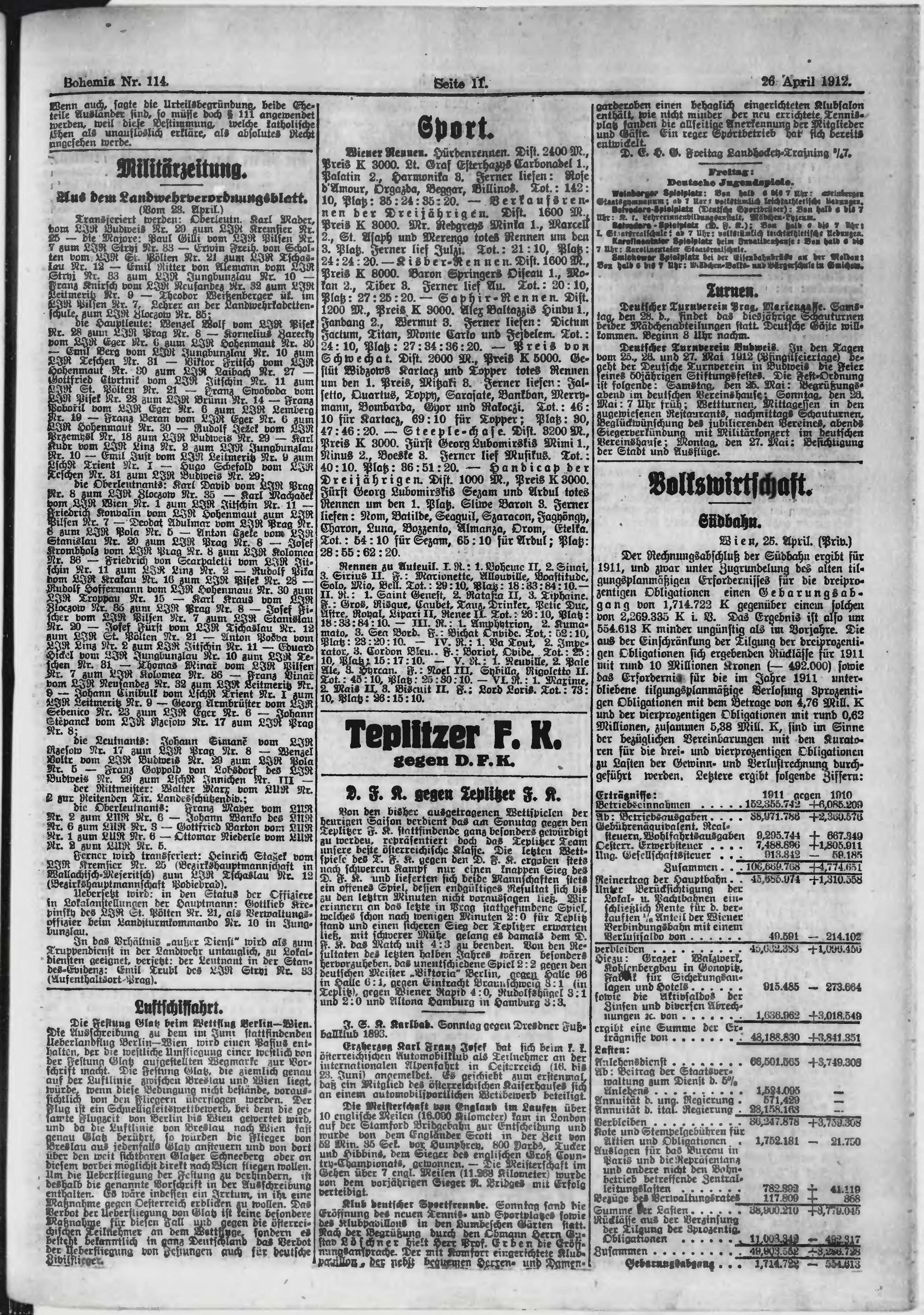 * Datum vydání výtisku: 26.4.1912 Číslo výtisku: 114 Poznámky k výtisku: ranní vydání;