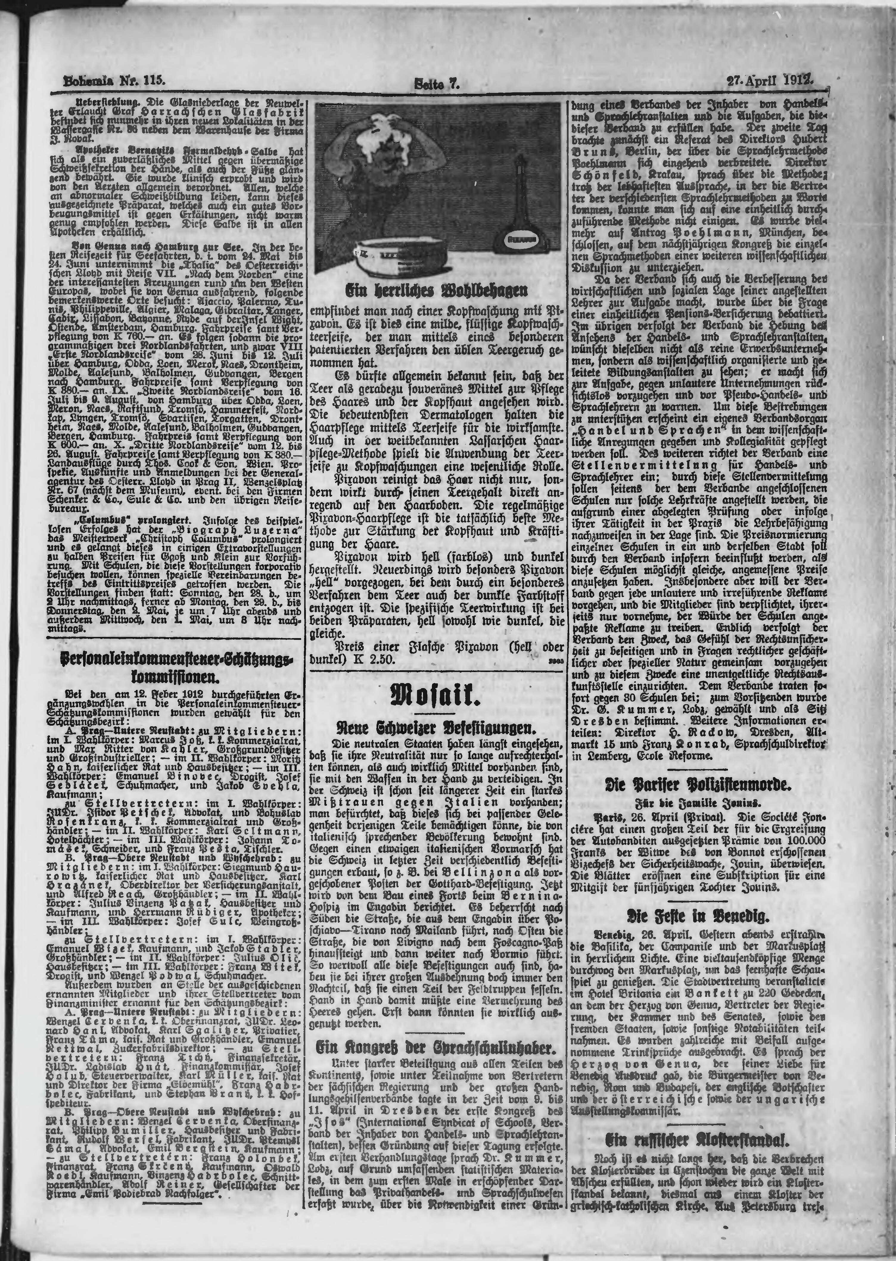 * Datum vydání výtisku: 27.4.1912 Číslo výtisku: 115 Poznámky k výtisku: ranní vydání;