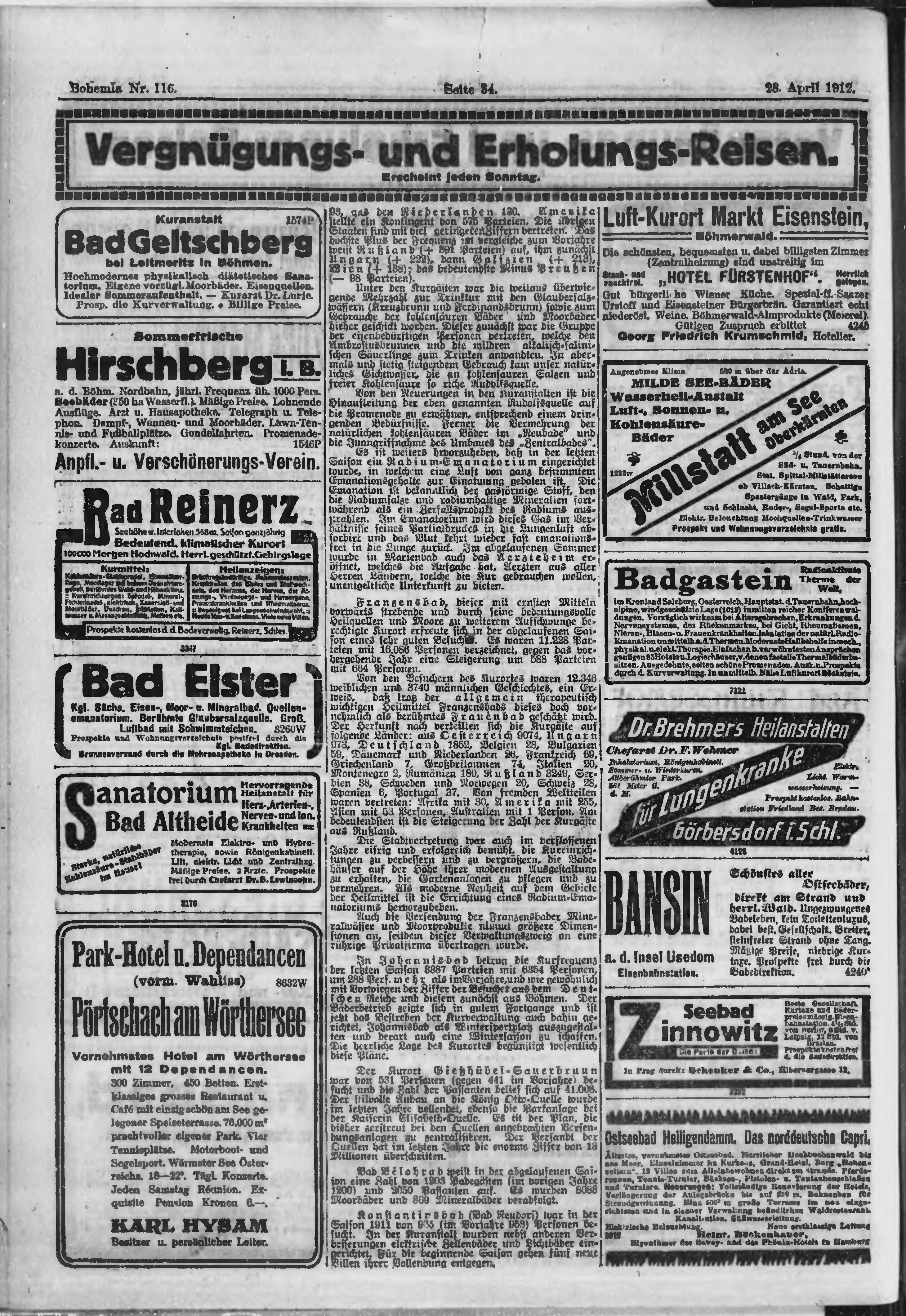 * Datum vydání výtisku: 28.4.1912 Číslo výtisku: 116 Poznámky k výtisku: ranní vydání;