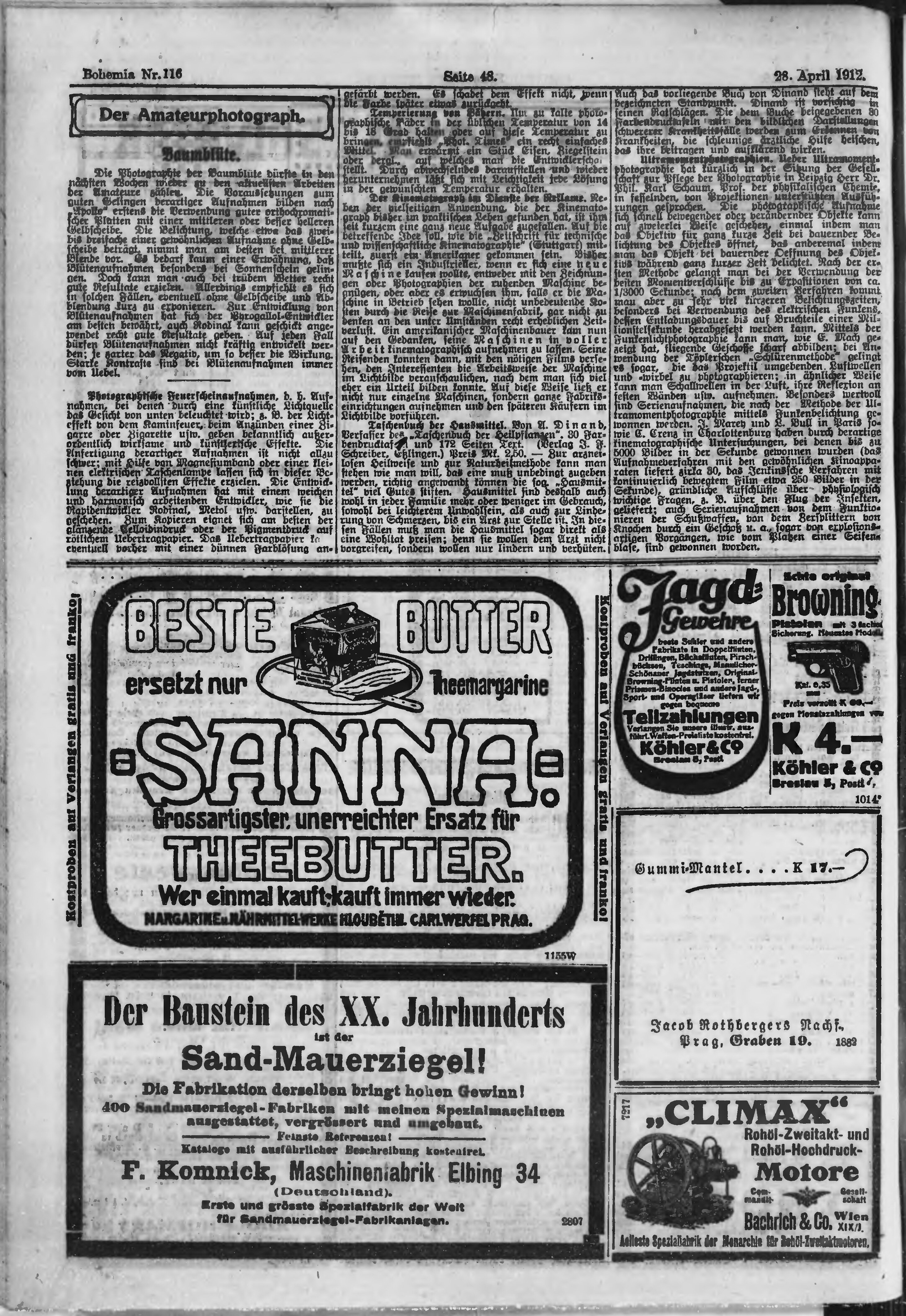 * Datum vydání výtisku: 28.4.1912 Číslo výtisku: 116 Poznámky k výtisku: ranní vydání;