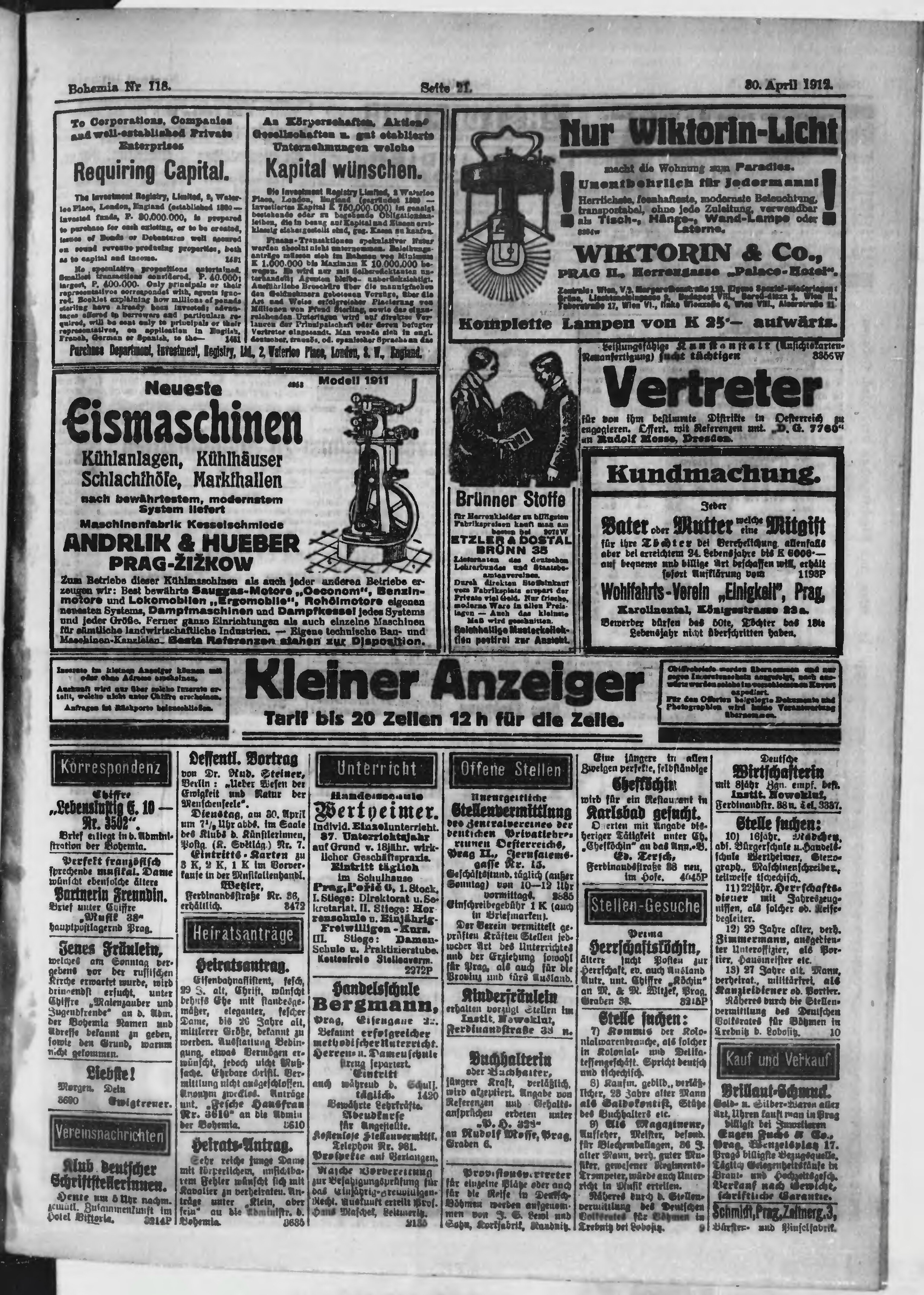 * Datum vydání výtisku: 30.4.1912 Číslo výtisku: 118 Poznámky k výtisku: ranní vydání;