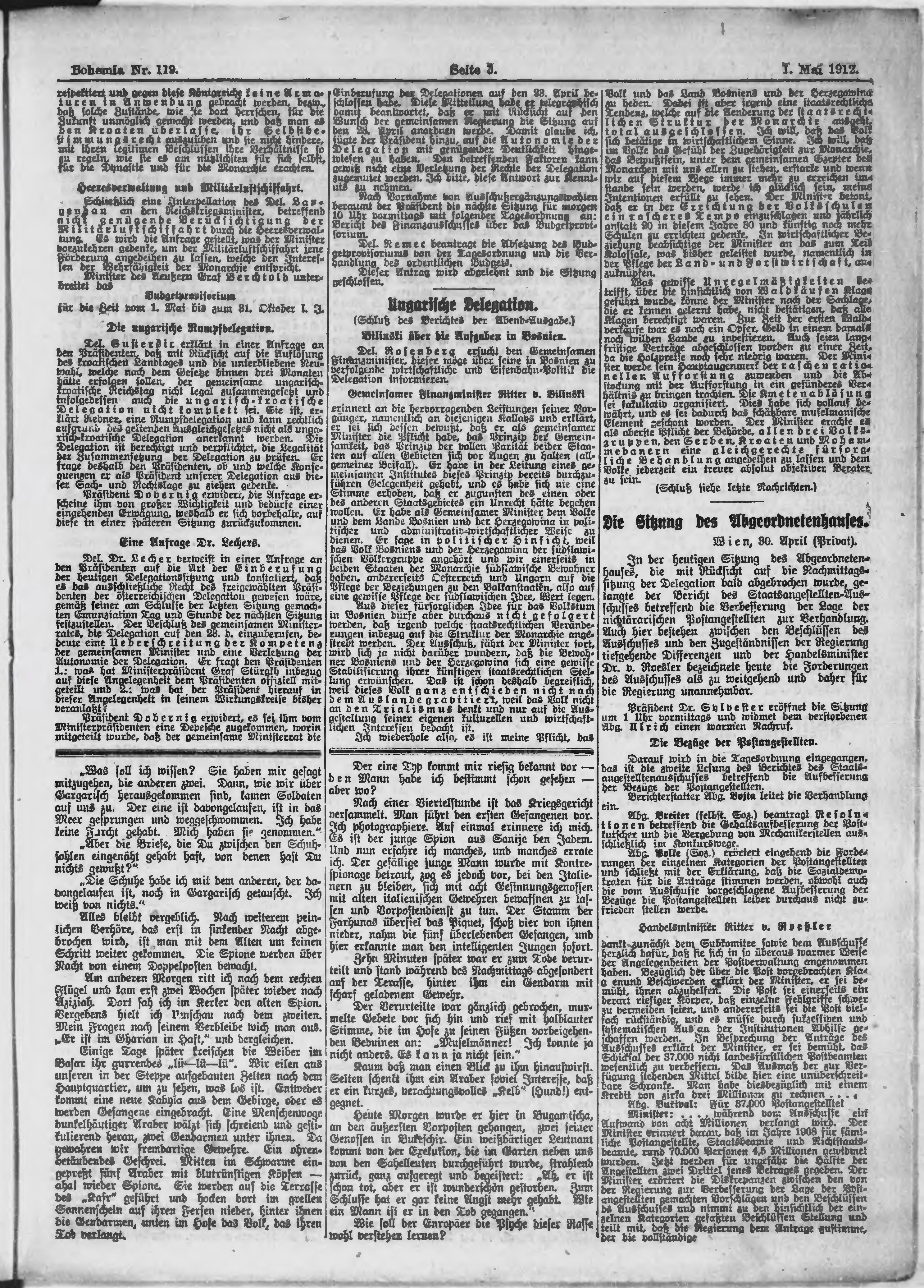 * Datum vydání výtisku: 1.5.1912 Číslo výtisku: 119 Poznámky k výtisku: ranní vydání;