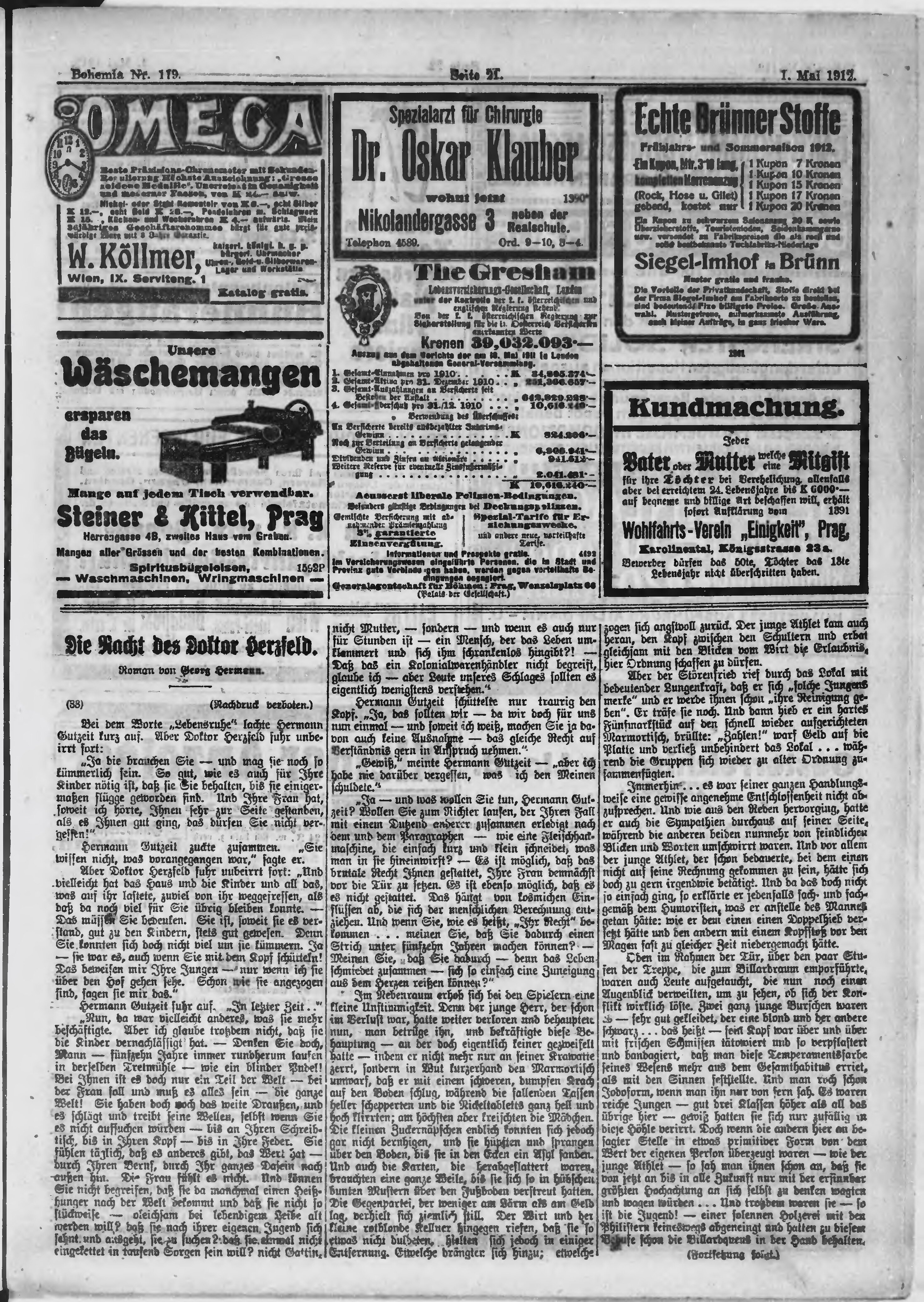 * Datum vydání výtisku: 1.5.1912 Číslo výtisku: 119 Poznámky k výtisku: ranní vydání;