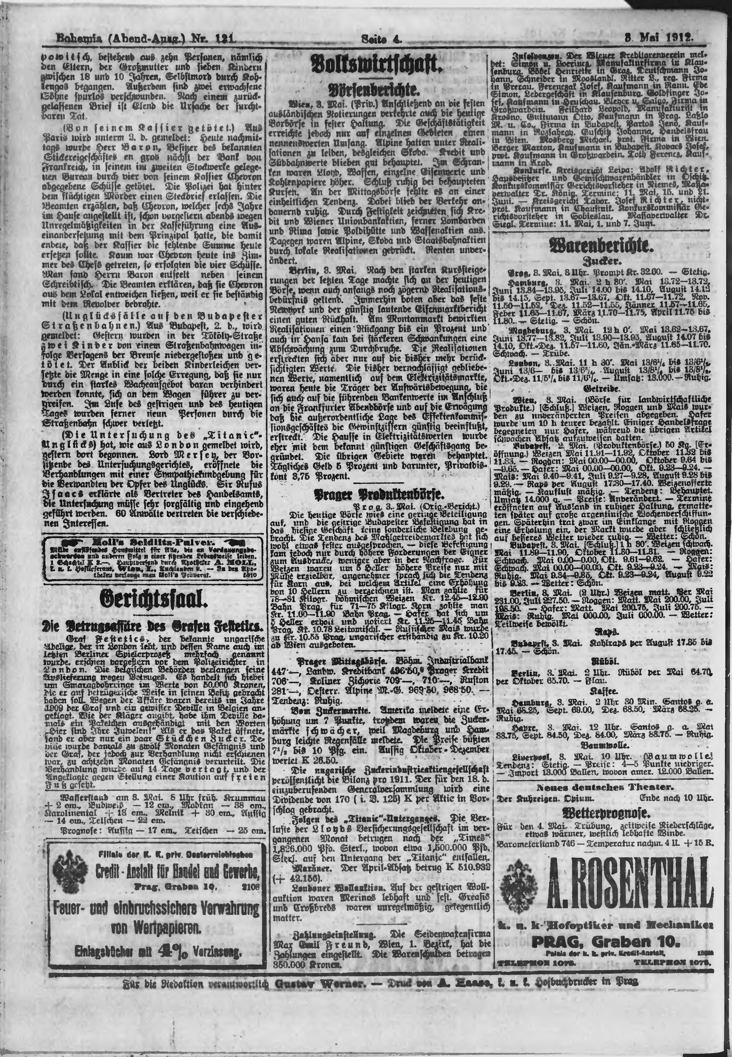 * Datum vydání výtisku: 3.5.1912 Číslo výtisku: 121 Poznámky k výtisku: večerní vydání