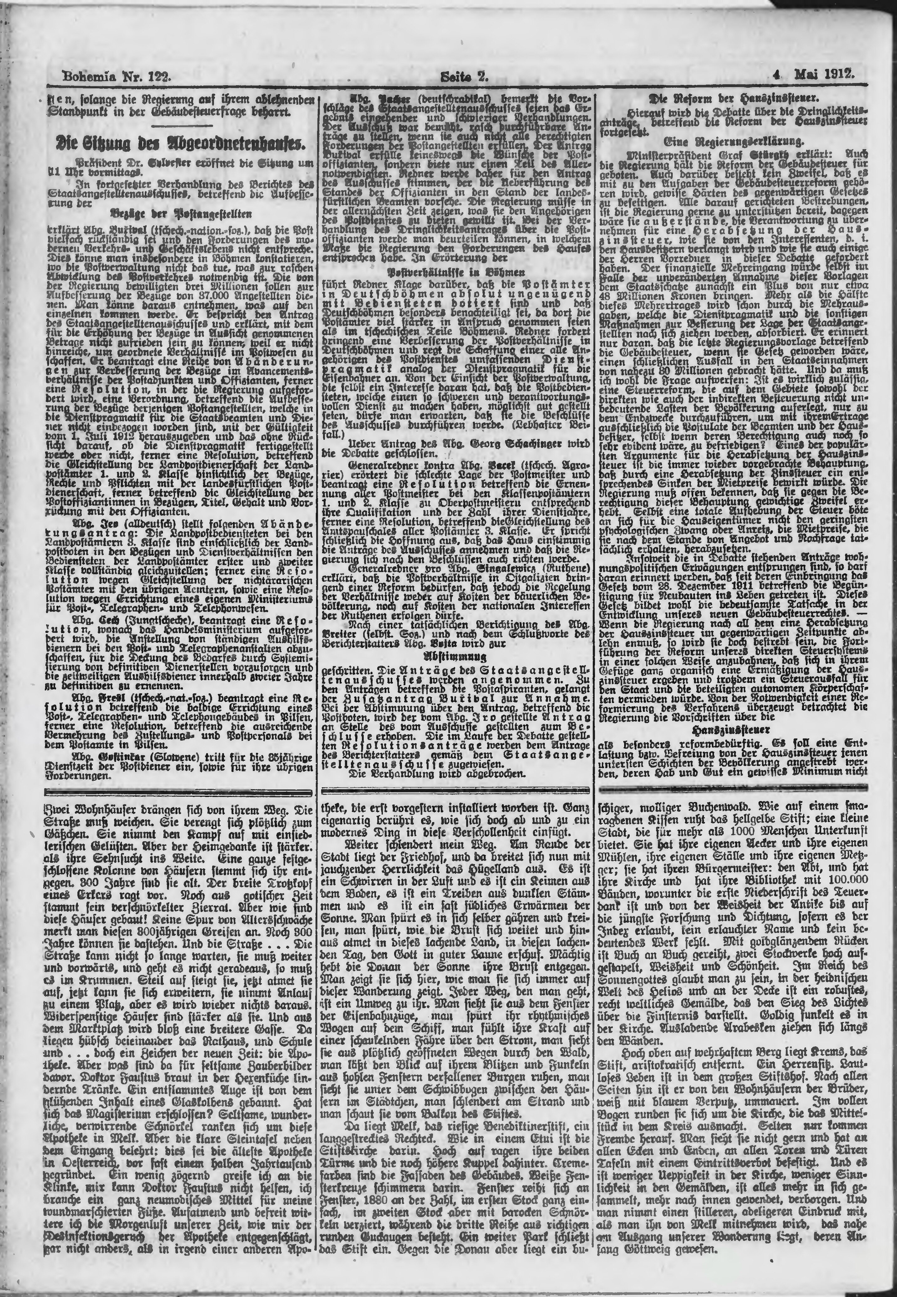 * Datum vydání výtisku: 4.5.1912 Číslo výtisku: 122 Poznámky k výtisku: ranní vydání;