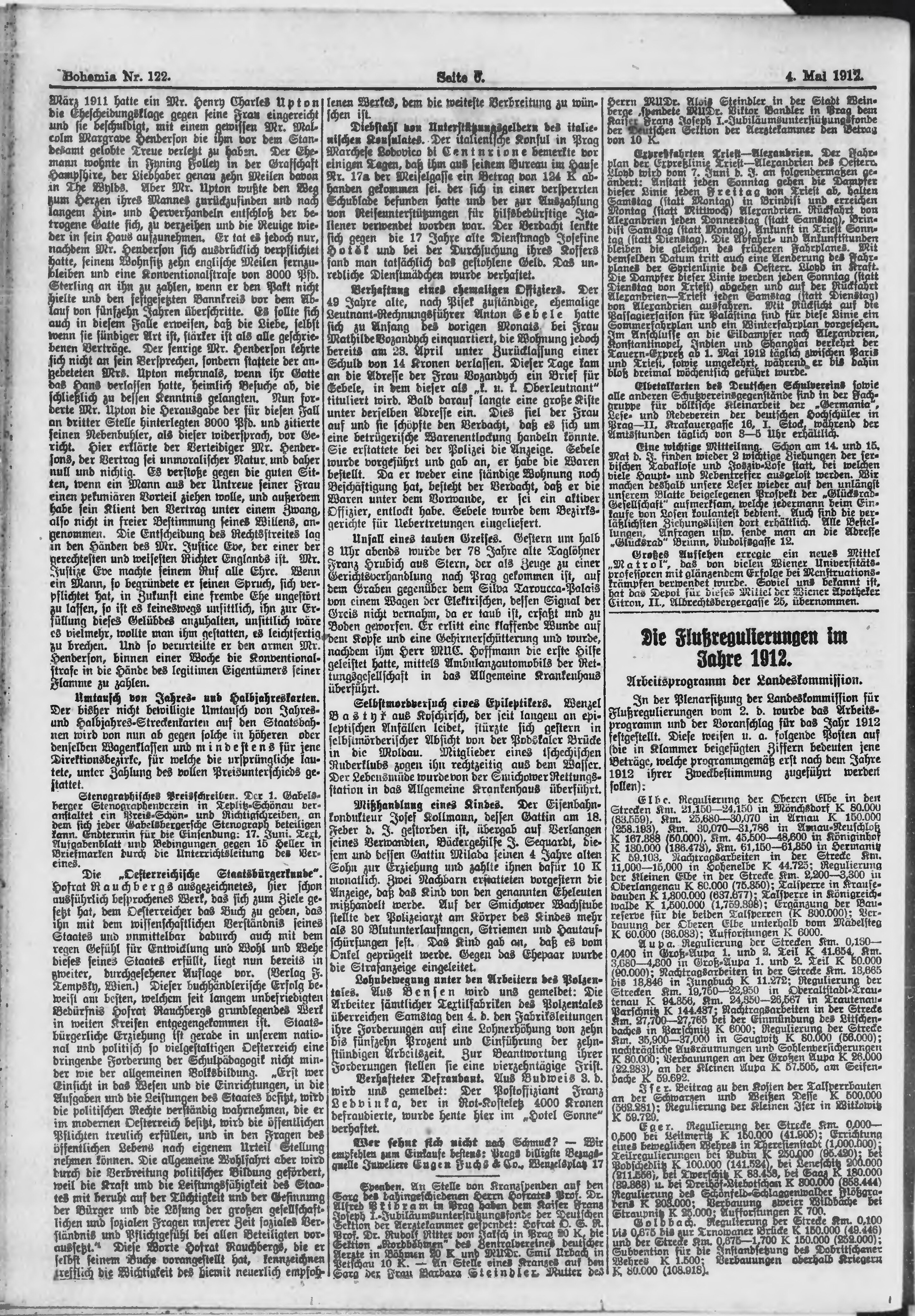 * Datum vydání výtisku: 4.5.1912 Číslo výtisku: 122 Poznámky k výtisku: ranní vydání;