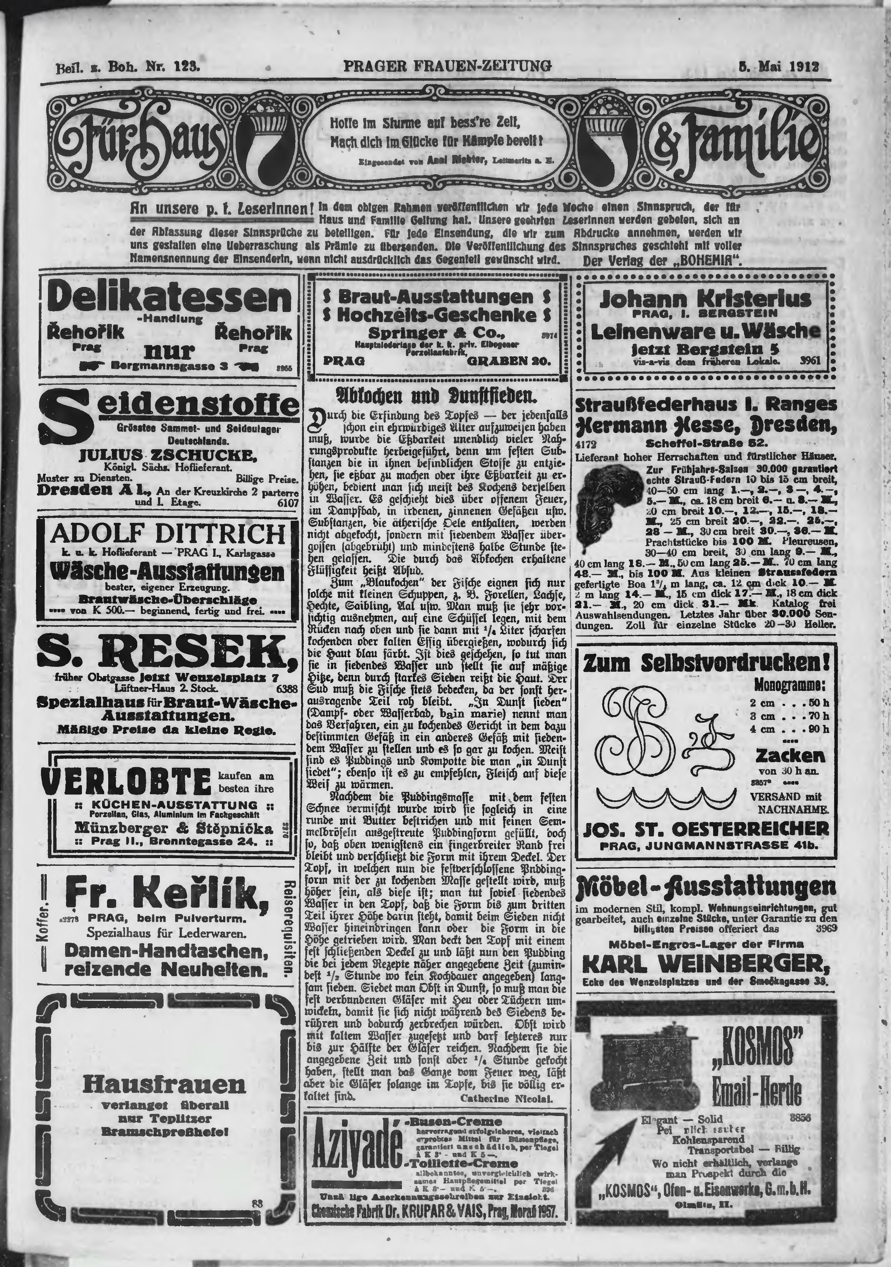 * Datum vydání výtisku: 5.5.1912 Číslo výtisku: 123 Poznámky k výtisku: ranní vydání;
