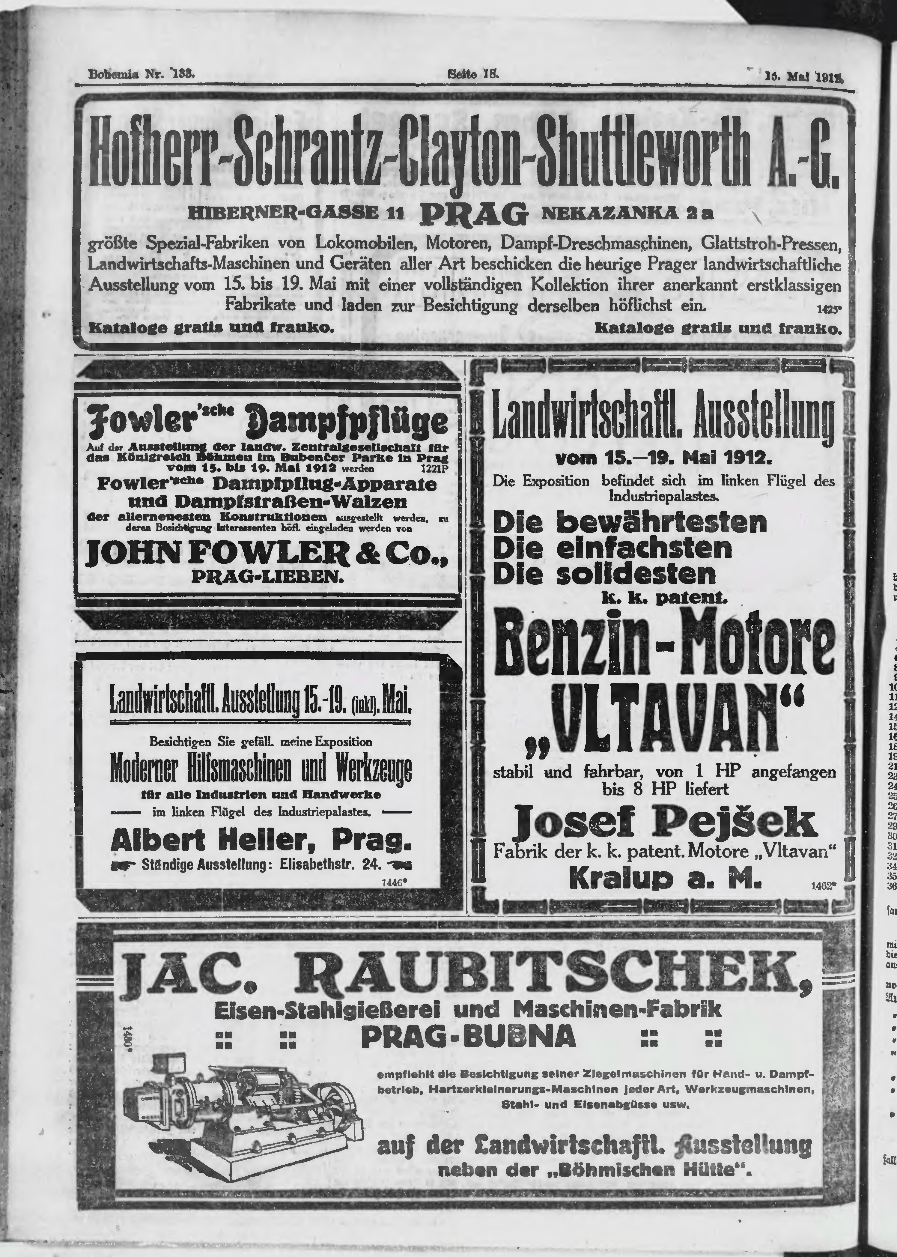 * Datum vydání výtisku: 15.5.1912 Číslo výtisku: 133 Poznámky k výtisku: ranní vydání;