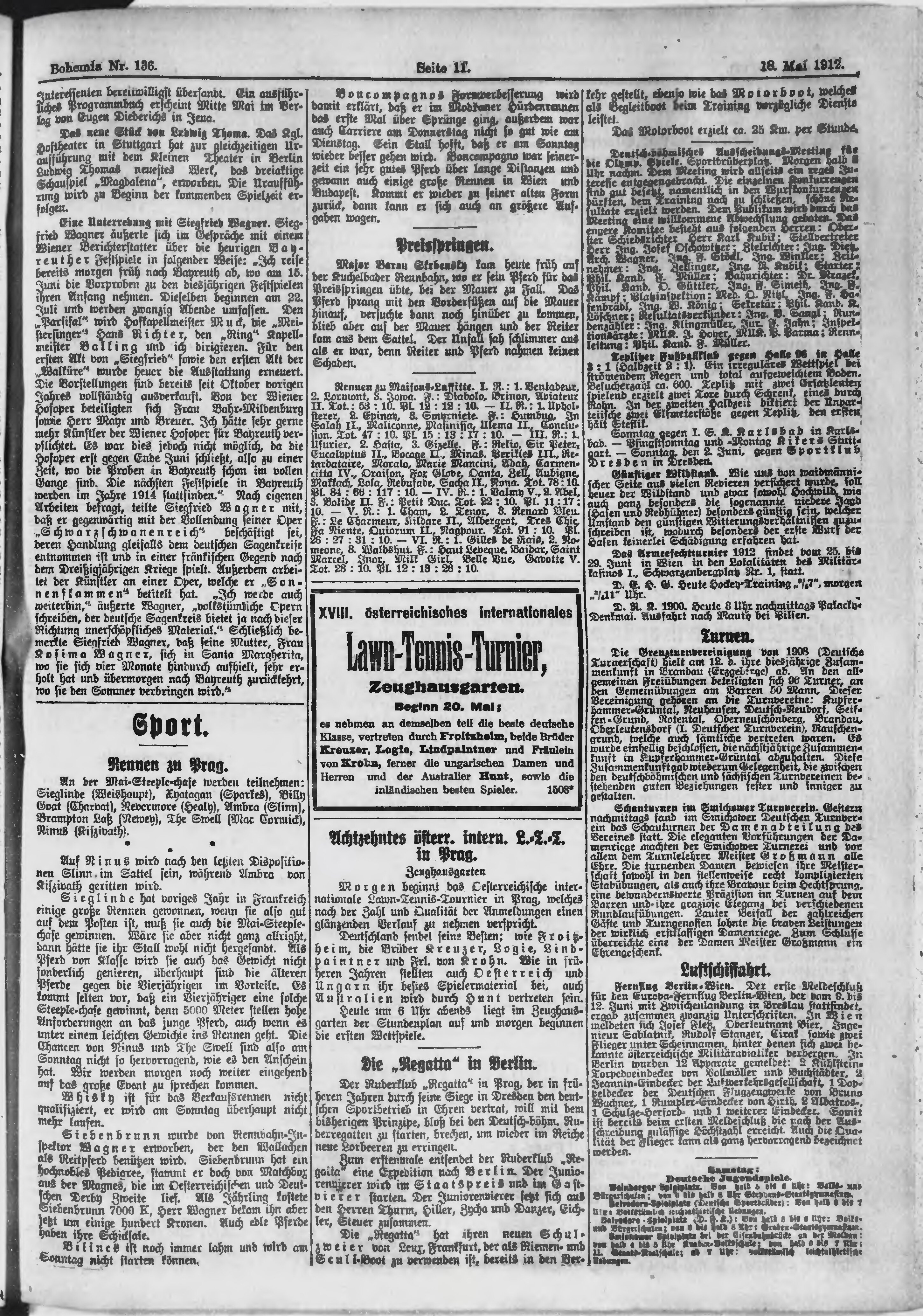 * Datum vydání výtisku: 18.5.1912 Číslo výtisku: 136 Poznámky k výtisku: ranní vydání;