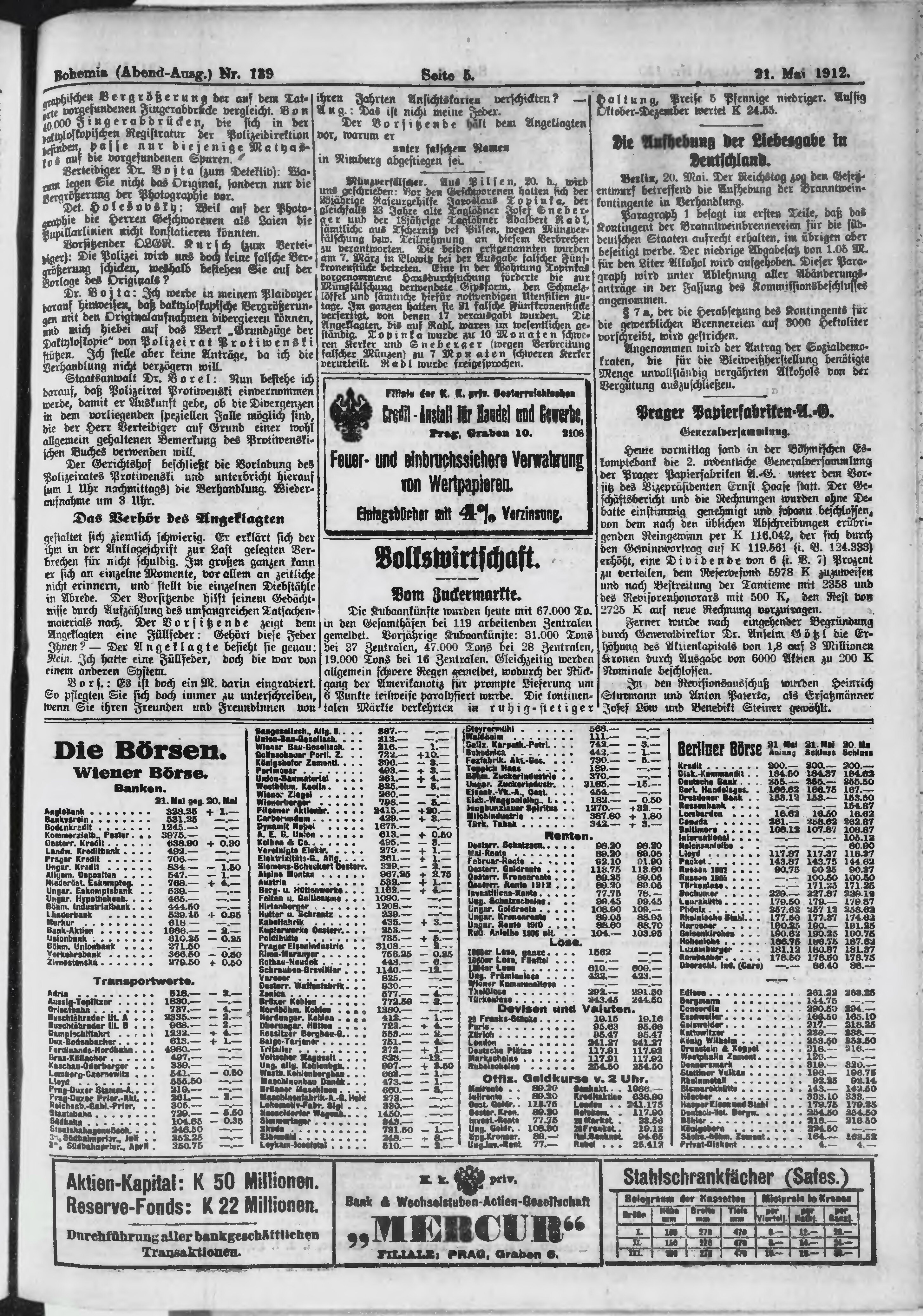 * Datum vydání výtisku: 21.5.1912 Číslo výtisku: 139 Poznámky k výtisku: večerní vydání