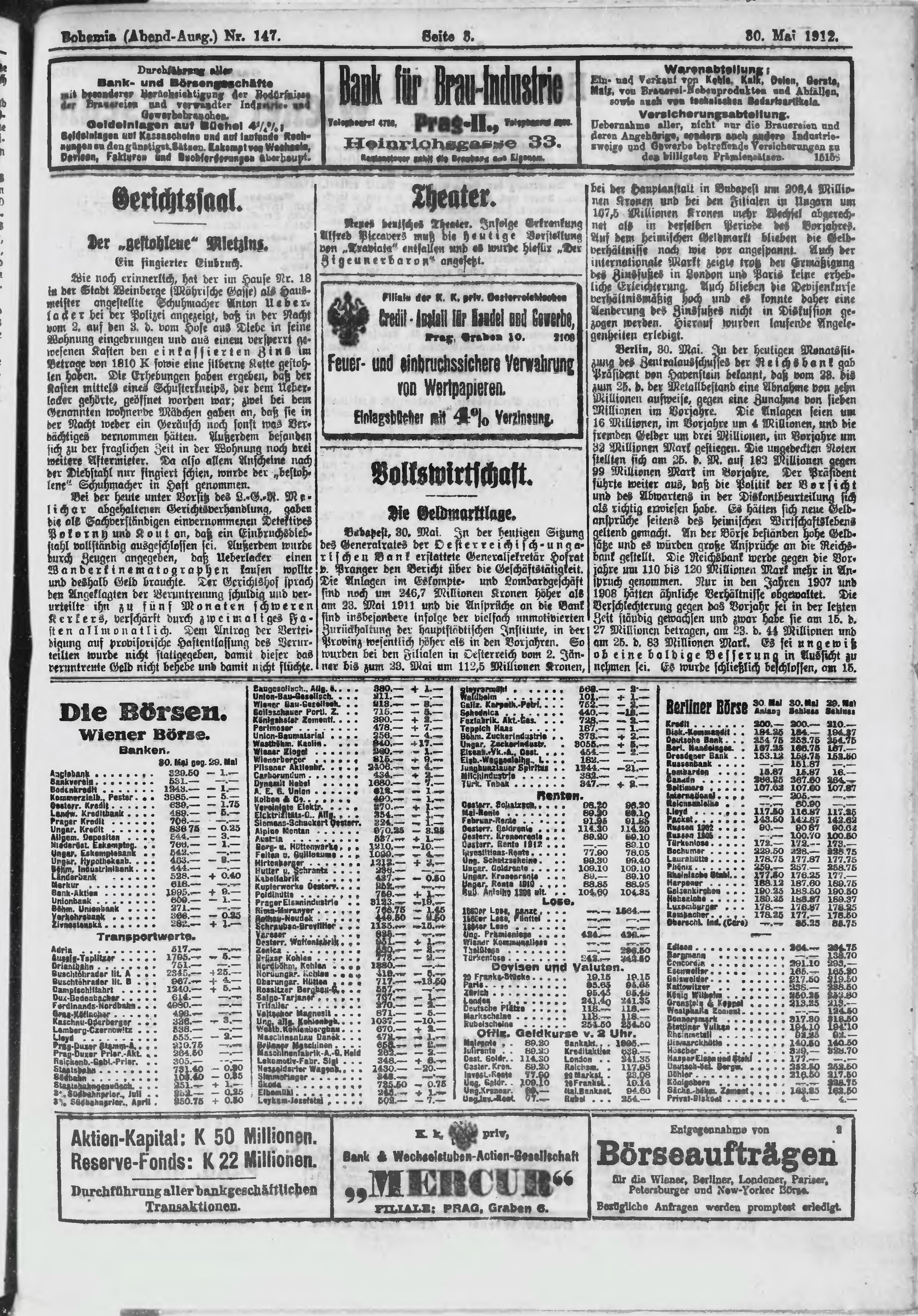 * Datum vydání výtisku: 30.5.1912 Číslo výtisku: 147 Poznámky k výtisku: večerní vydání