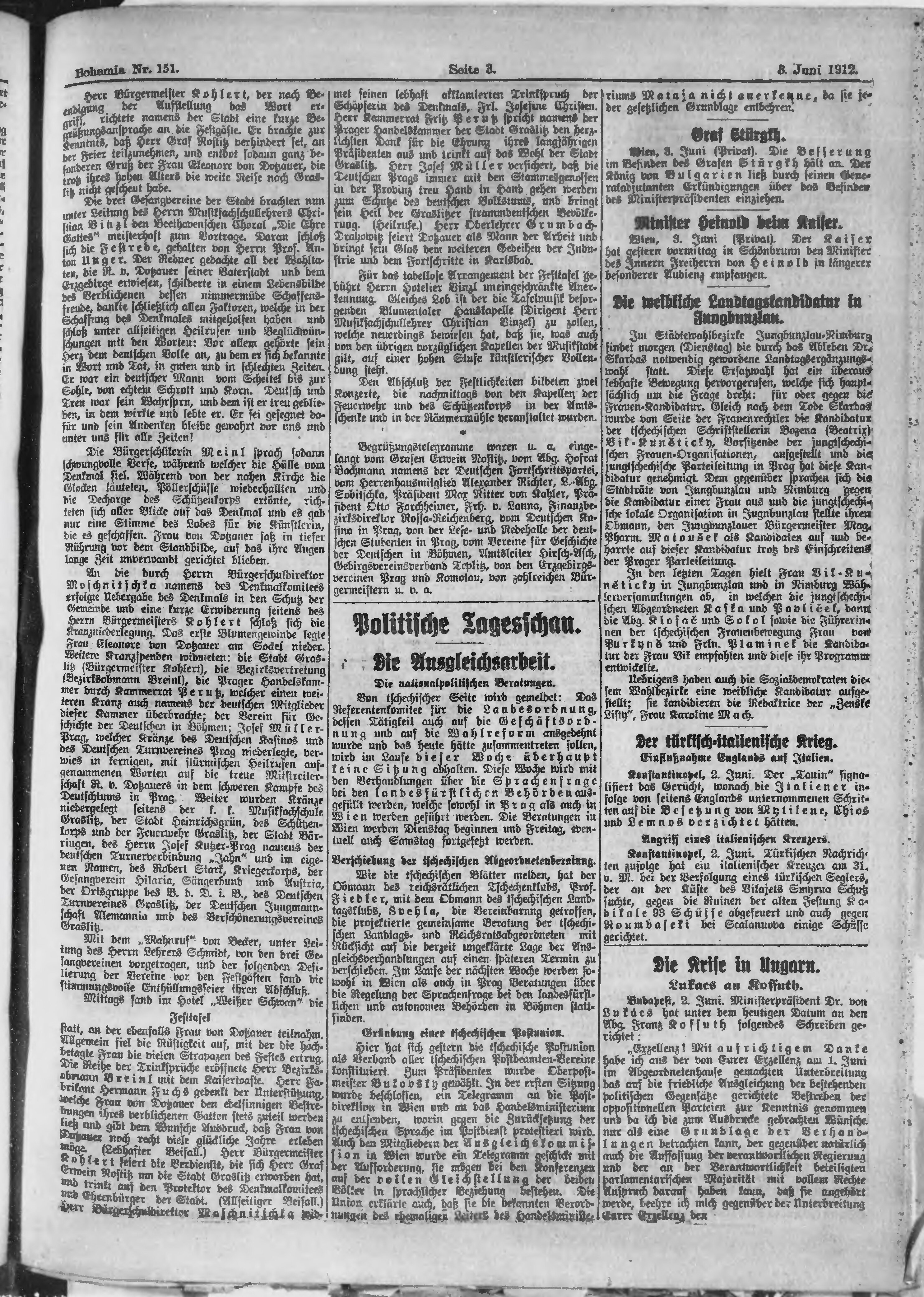 * Datum vydání výtisku: 3.6.1912 Číslo výtisku: 151 Poznámky k výtisku: polední vydání;