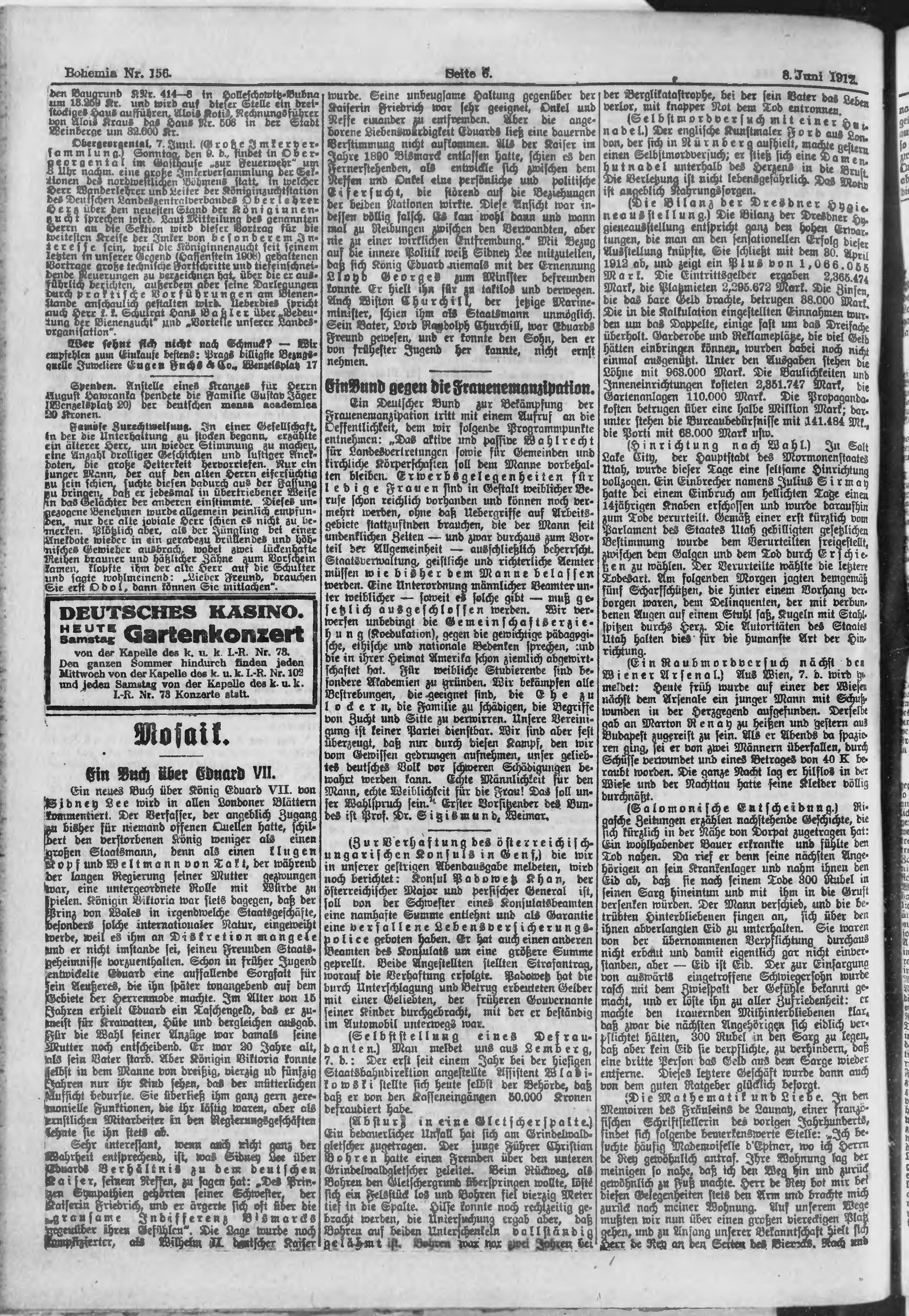 * Datum vydání výtisku: 8.6.1912 Číslo výtisku: 156 Poznámky k výtisku: ranní vydání;