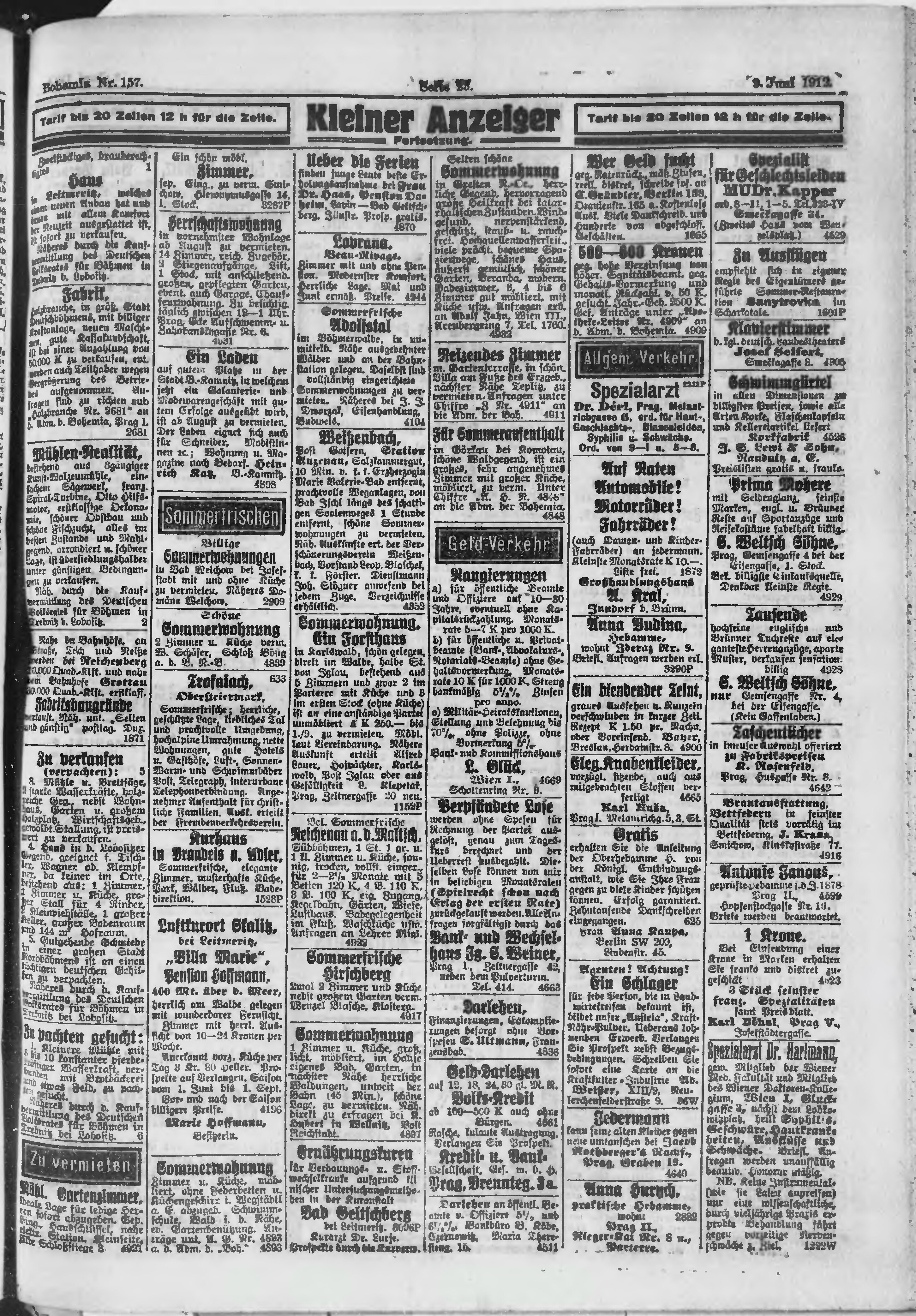 * Datum vydání výtisku: 9.6.1912 Číslo výtisku: 157 Poznámky k výtisku: ranní vydání;