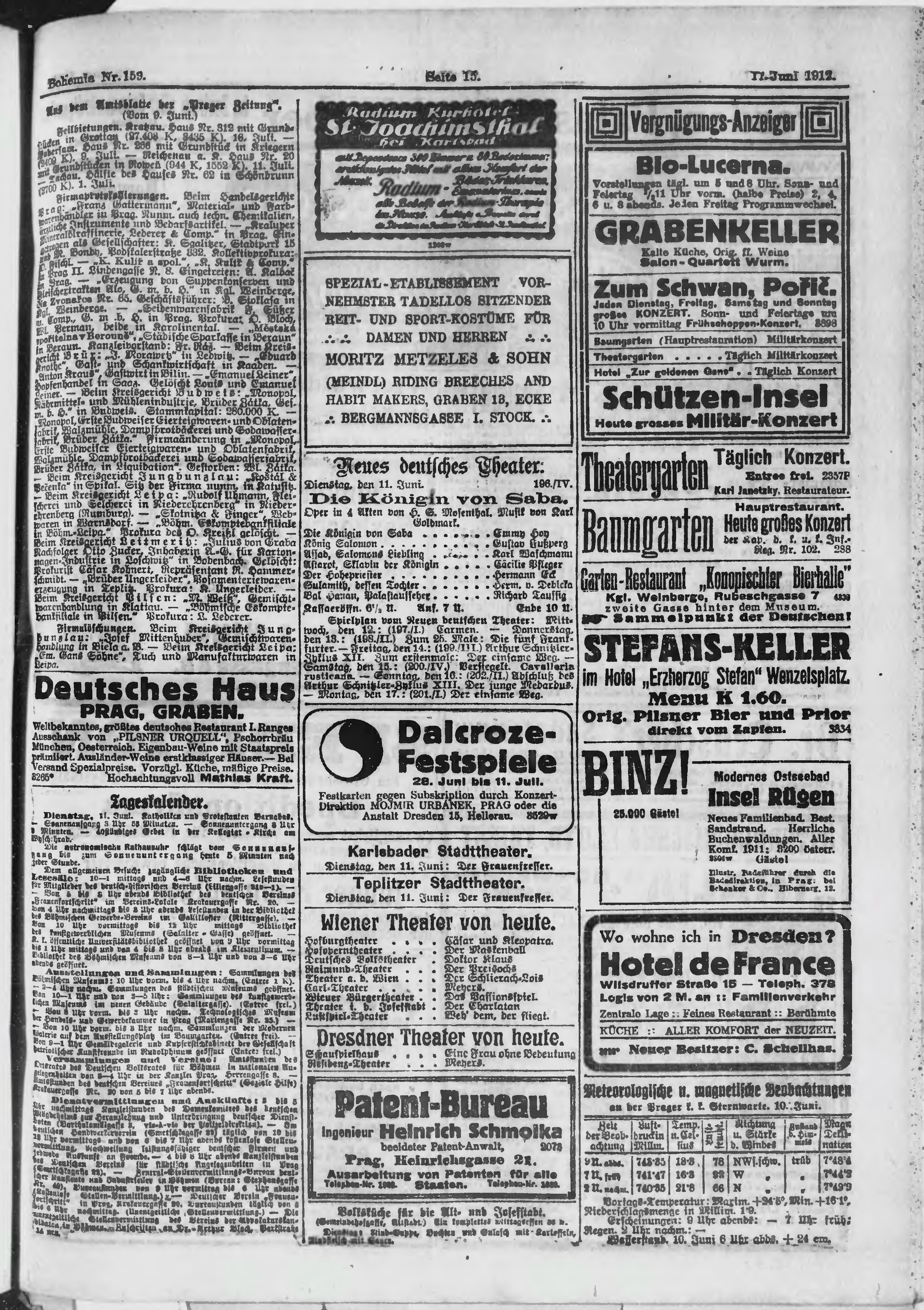 * Datum vydání výtisku: 11.6.1912 Číslo výtisku: 159 Poznámky k výtisku: ranní vydání;