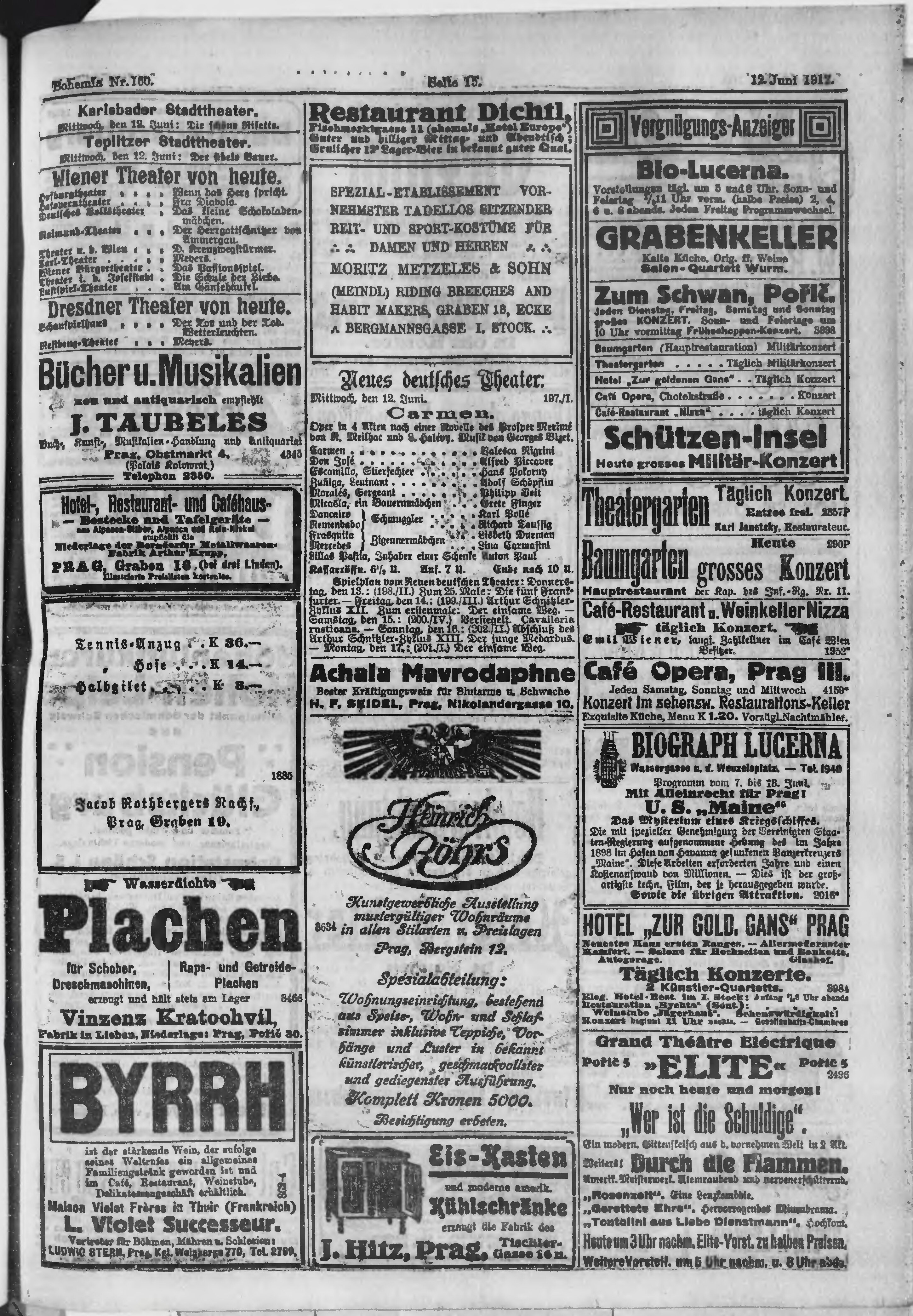 * Datum vydání výtisku: 12.6.1912 Číslo výtisku: 160 Poznámky k výtisku: ranní vydání;