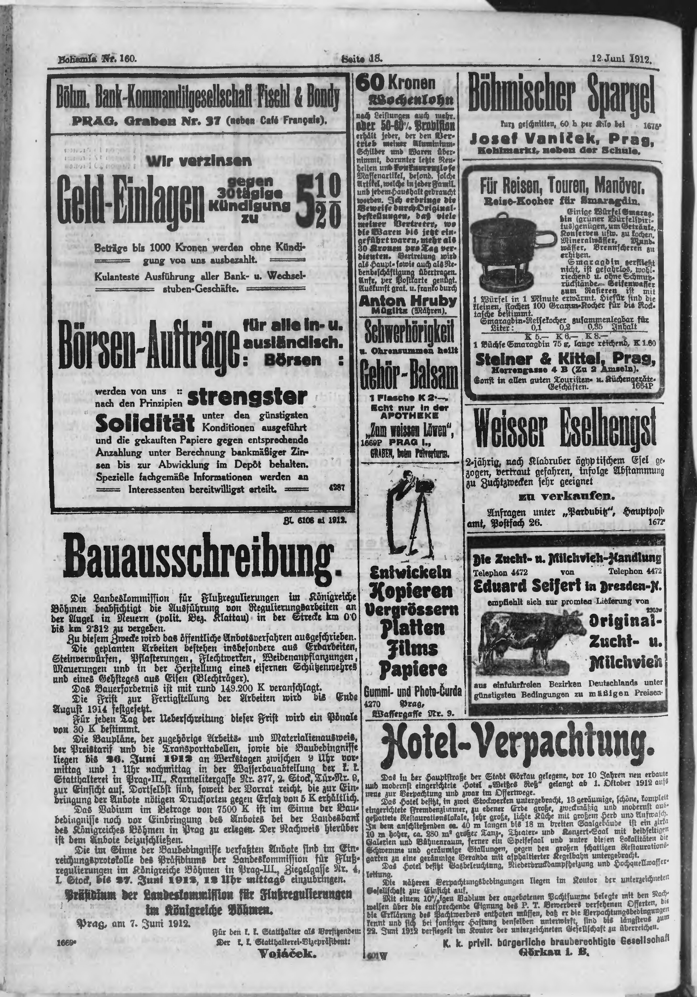 * Datum vydání výtisku: 12.6.1912 Číslo výtisku: 160 Poznámky k výtisku: ranní vydání;