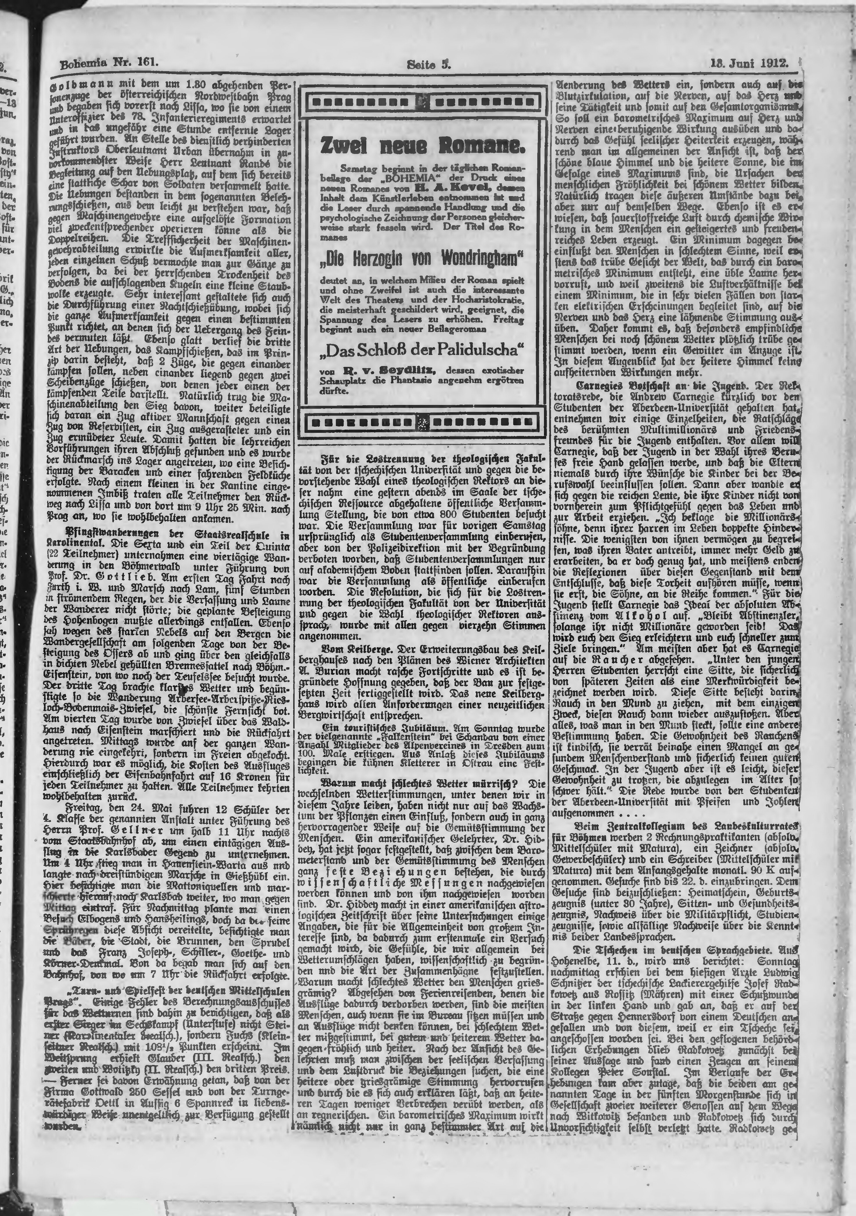 * Datum vydání výtisku: 13.6.1912 Číslo výtisku: 161 Poznámky k výtisku: ranní vydání;