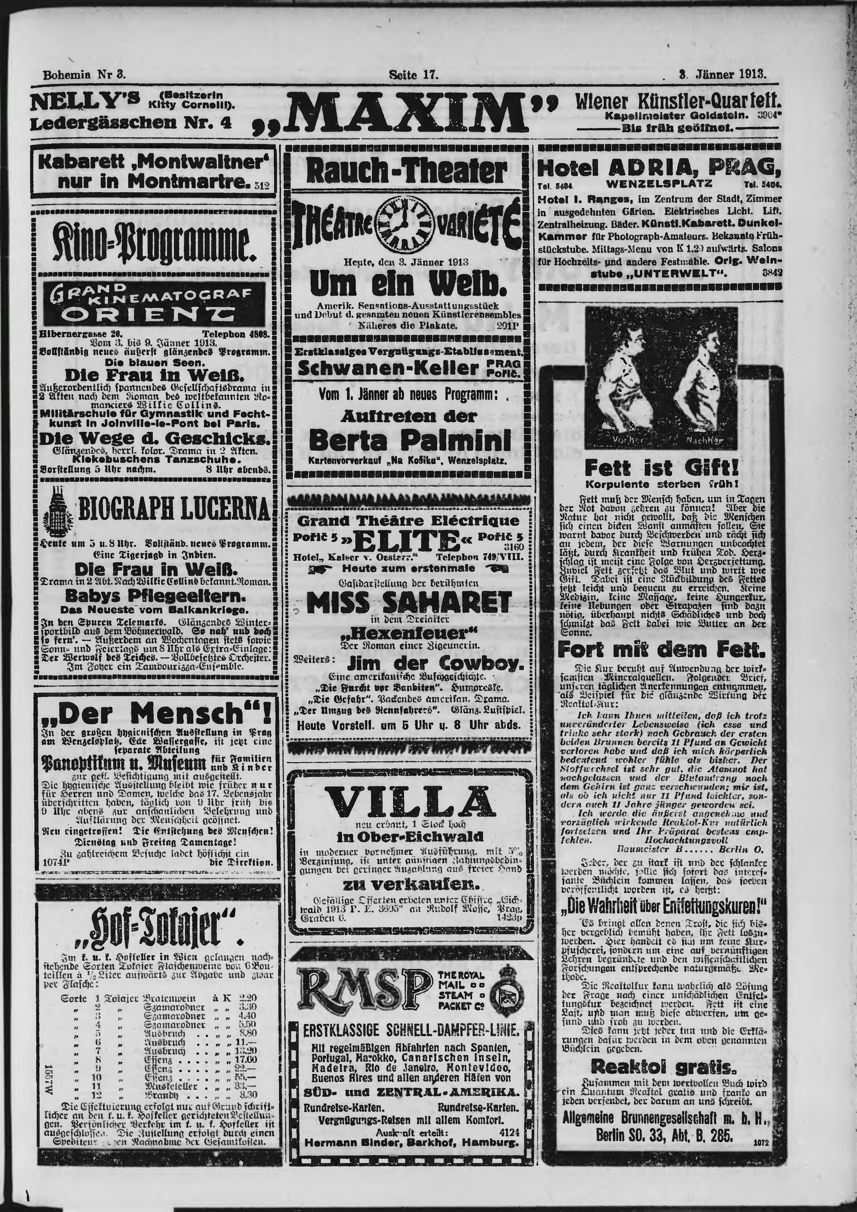* Datum vydání výtisku: 3.1.1913 Číslo výtisku: 3 Poznámky k výtisku: ranní vydání;