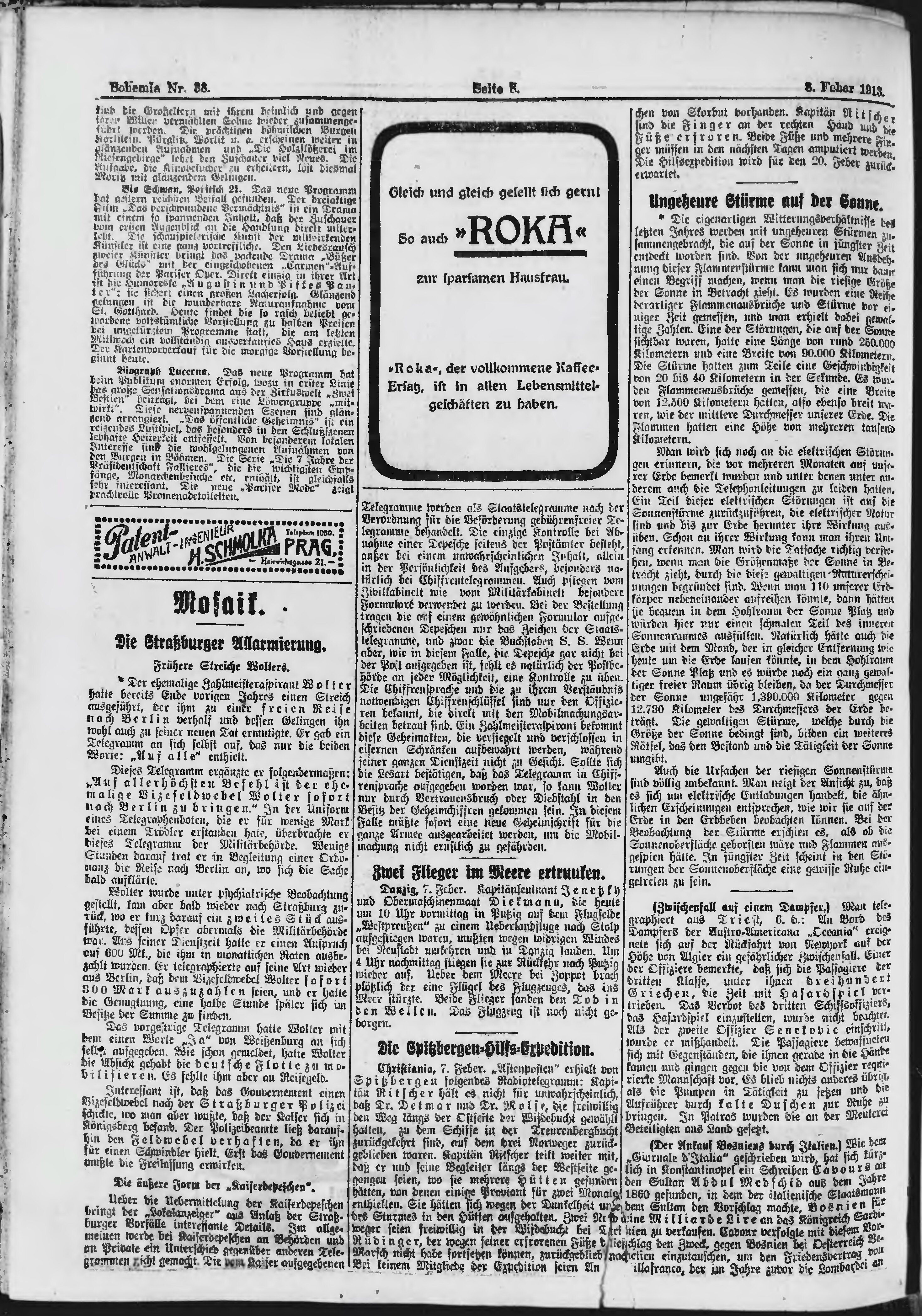* Datum vydání výtisku: 8.2.1913 Číslo výtisku: 38 Poznámky k výtisku: ranní vydání;