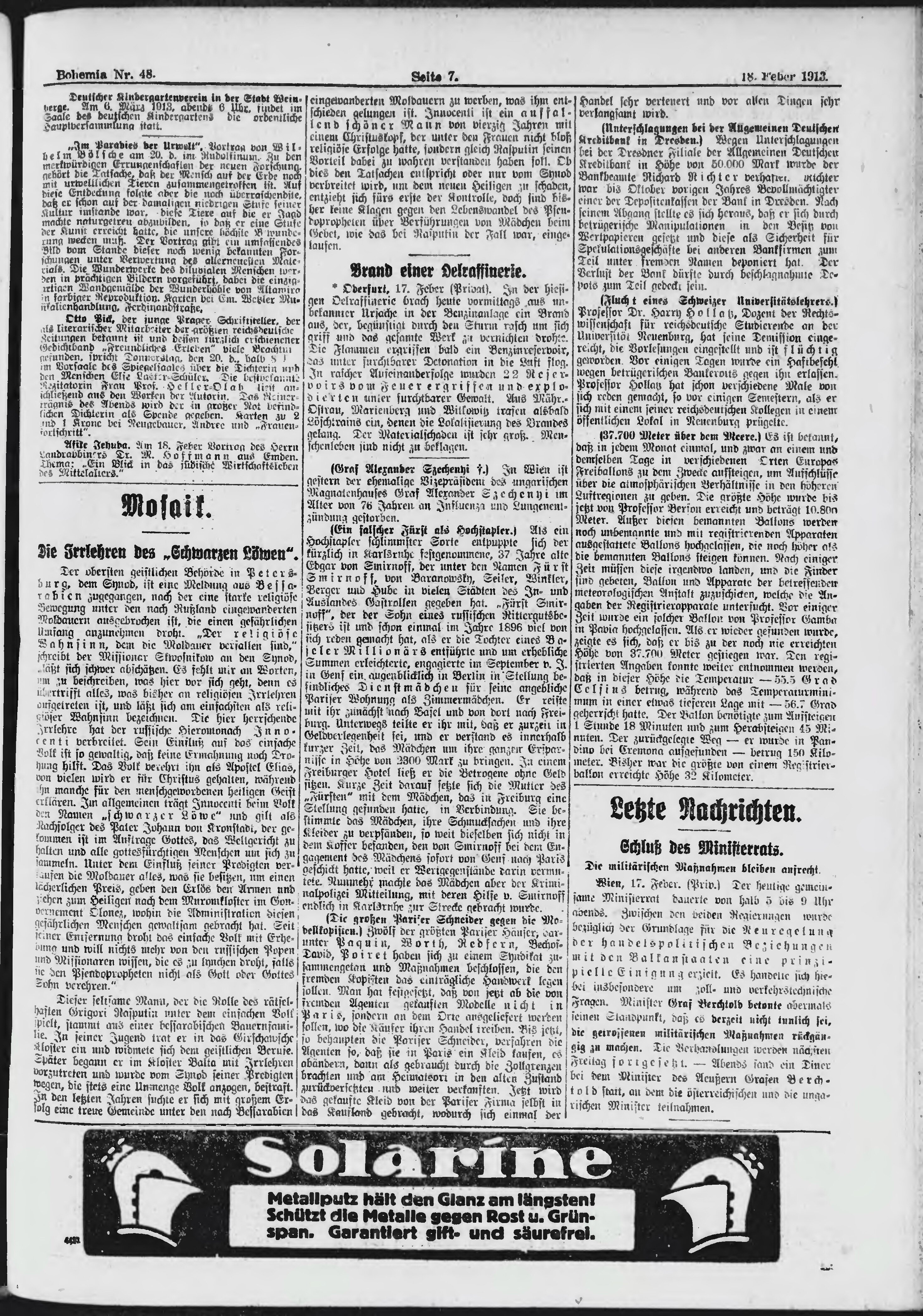 * Datum vydání výtisku: 18.2.1913 Číslo výtisku: 48 Poznámky k výtisku: ranní vydání;