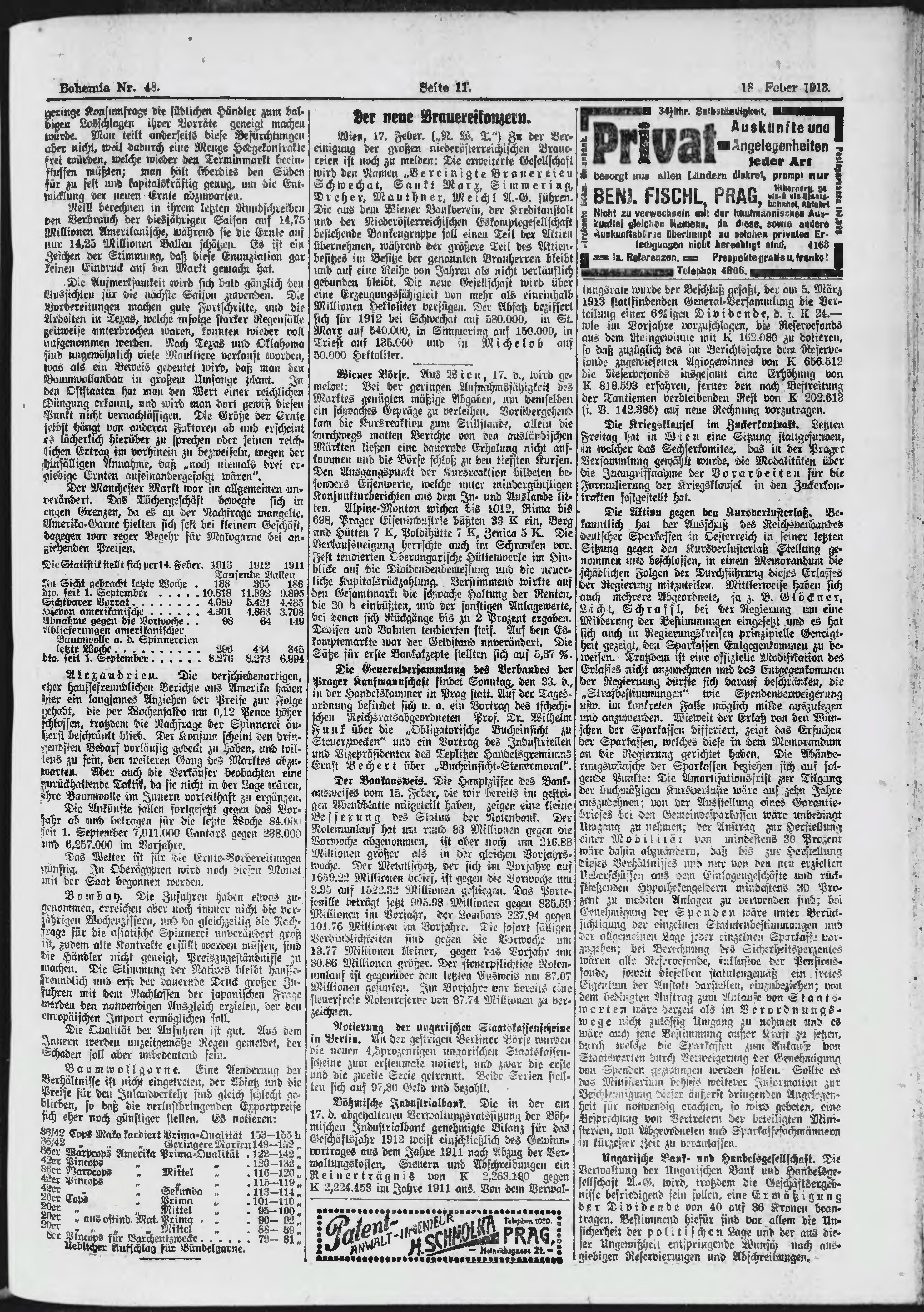 * Datum vydání výtisku: 18.2.1913 Číslo výtisku: 48 Poznámky k výtisku: ranní vydání;