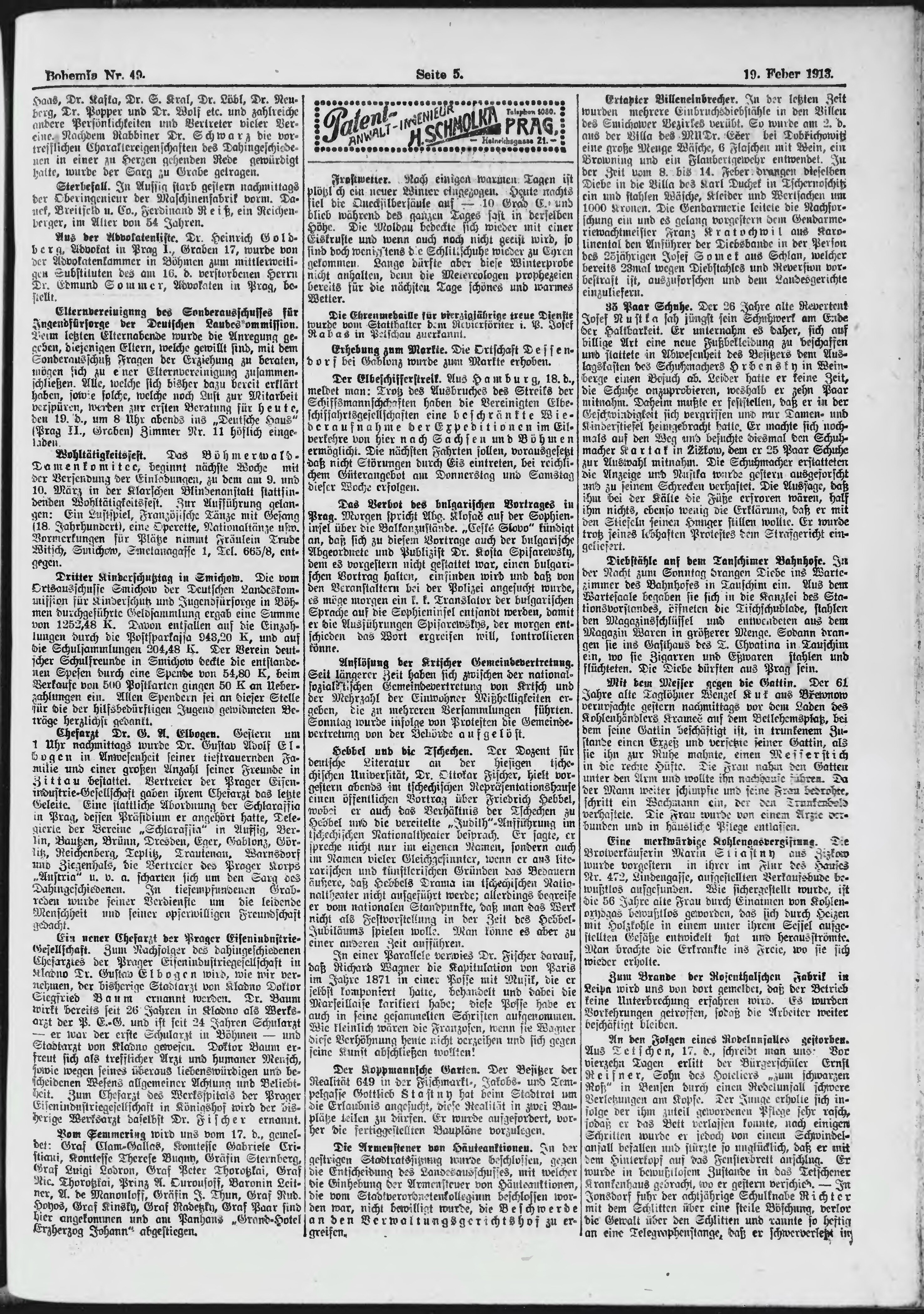* Datum vydání výtisku: 19.2.1913 Číslo výtisku: 49 Poznámky k výtisku: ranní vydání;