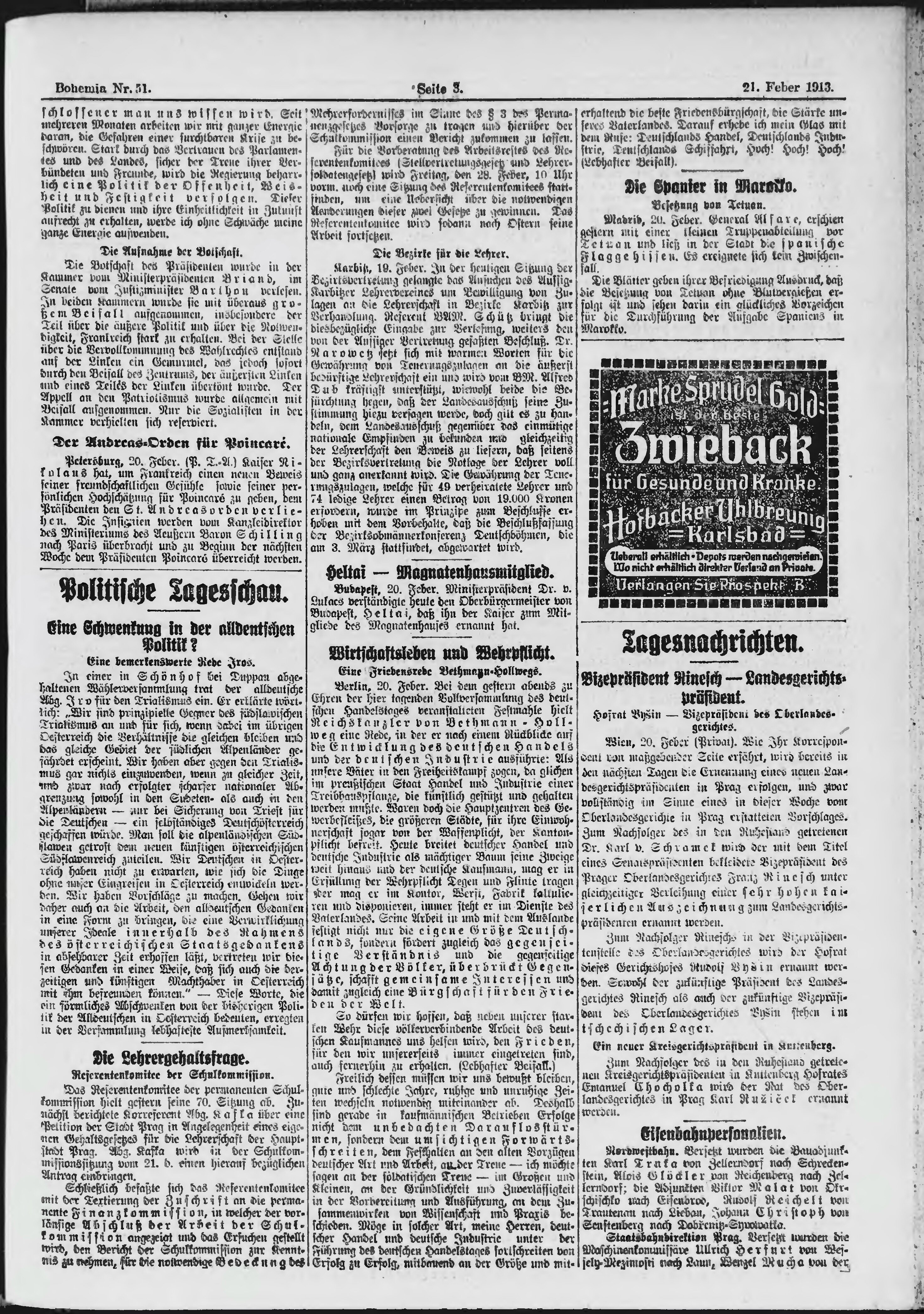 * Datum vydání výtisku: 21.2.1913 Číslo výtisku: 51 Poznámky k výtisku: ranní vydání;